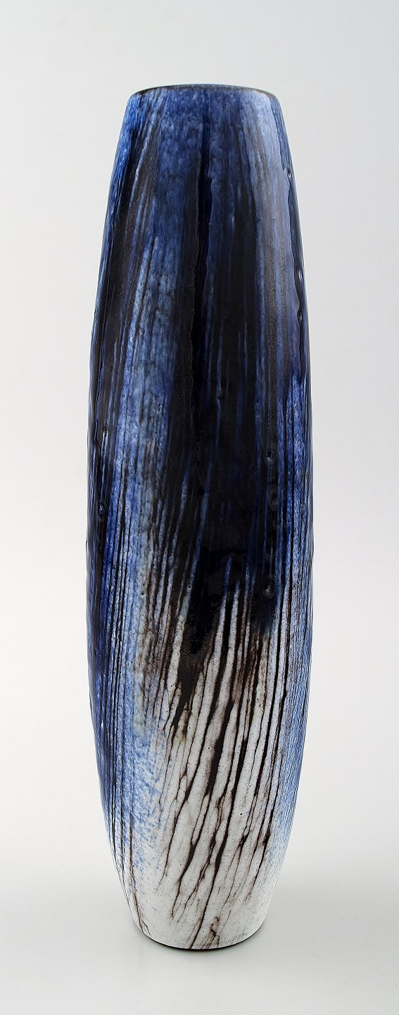 Mari Simmulson for Upsala-Ekeby smal keramikvase. Smuk glasur i mørkeblå nuancer. I perfekt stand. 1960´erne. Måler 25 x 7 cm. Stemplet.