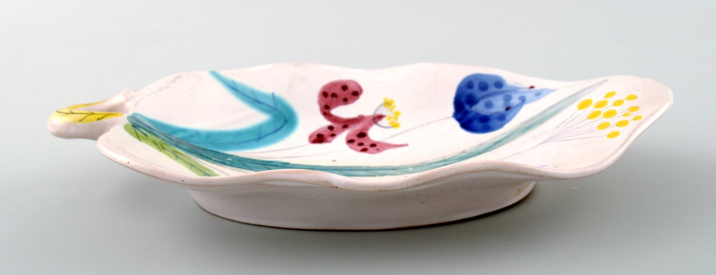 Stig Lindberg fad, Gustavsberg studio. Fajance. 1940´erne. Måler : 24.5 cm. x 12,5 cm. Signeret med "studiohand". I perfekt stand.