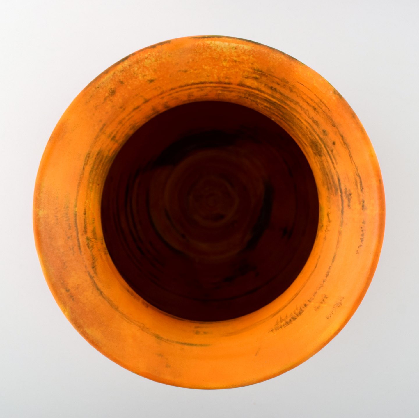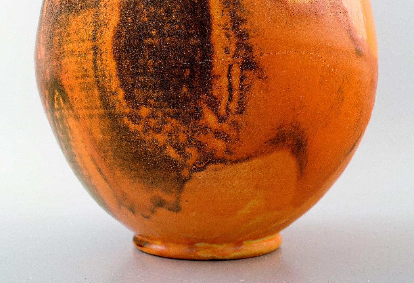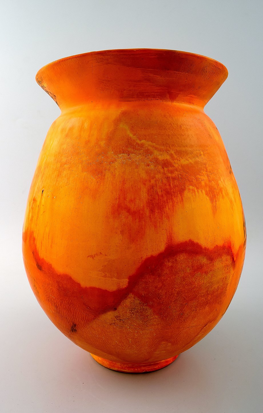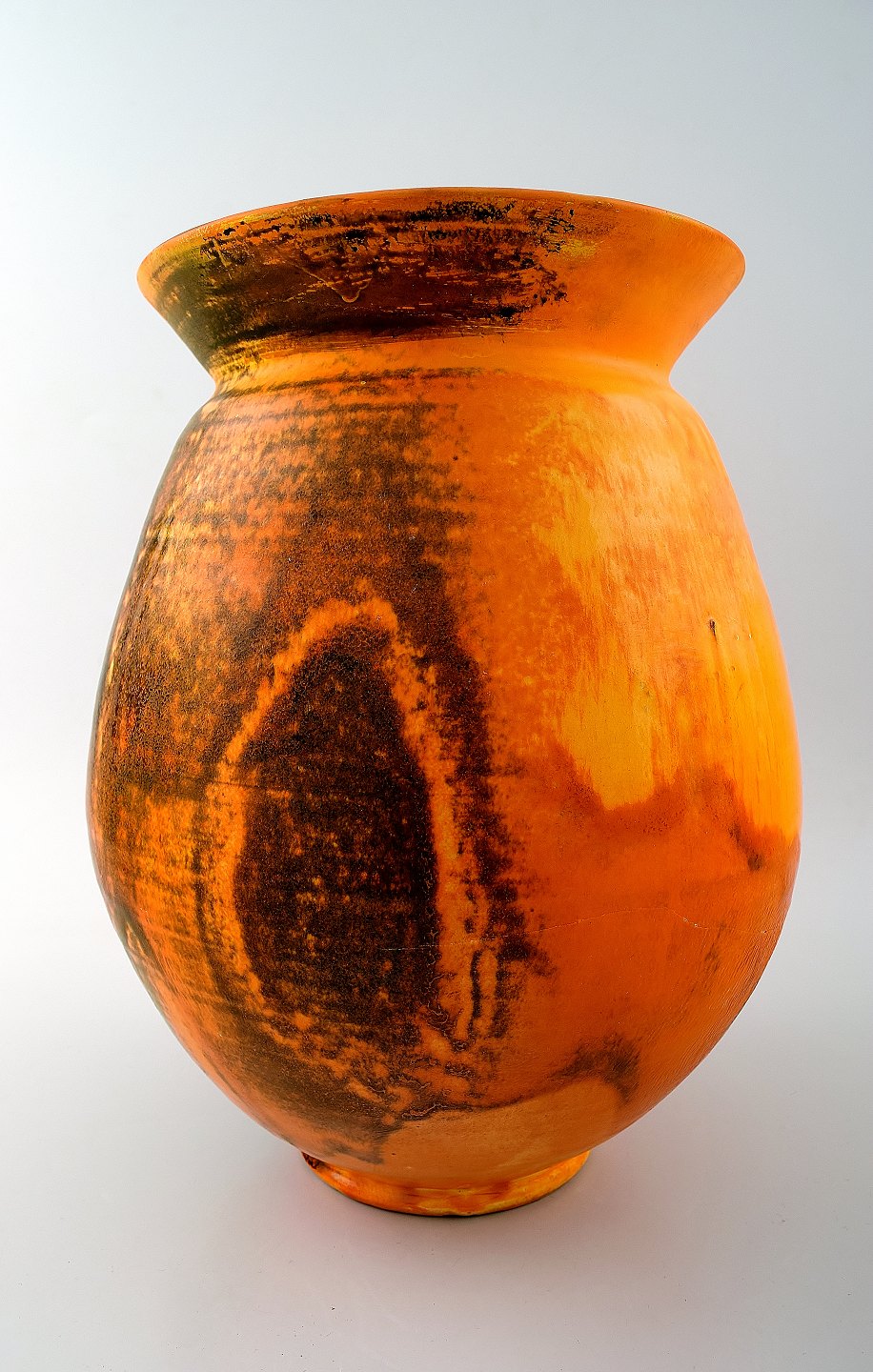 Stor Kähler, HAK, Svend Hammershøi, glaseret gulvvase i stentøj. I perfekt stand. Flot urangul/orange glasur. Stemplet. Måler 27 x 18 cm.