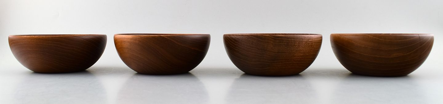 Kay Bojesen (Kaj Bøjesen) 4 skåle i teaktræ. Måler : 15 x 6 cm. Flot og velholdt stand, smuk patina. Stemplet.
