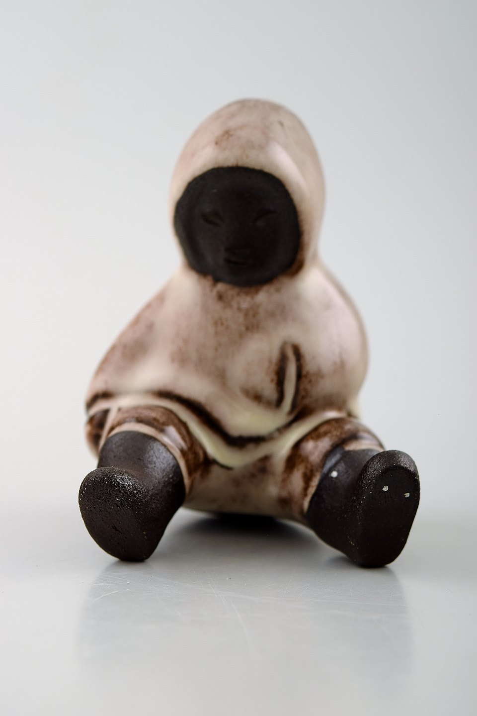 Hyllested Keramik, Keldbylille på Møn. 3 eskimoer og en isbjørn. Måler : Største 10 cm. I perfekt stand. Stemplet.