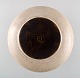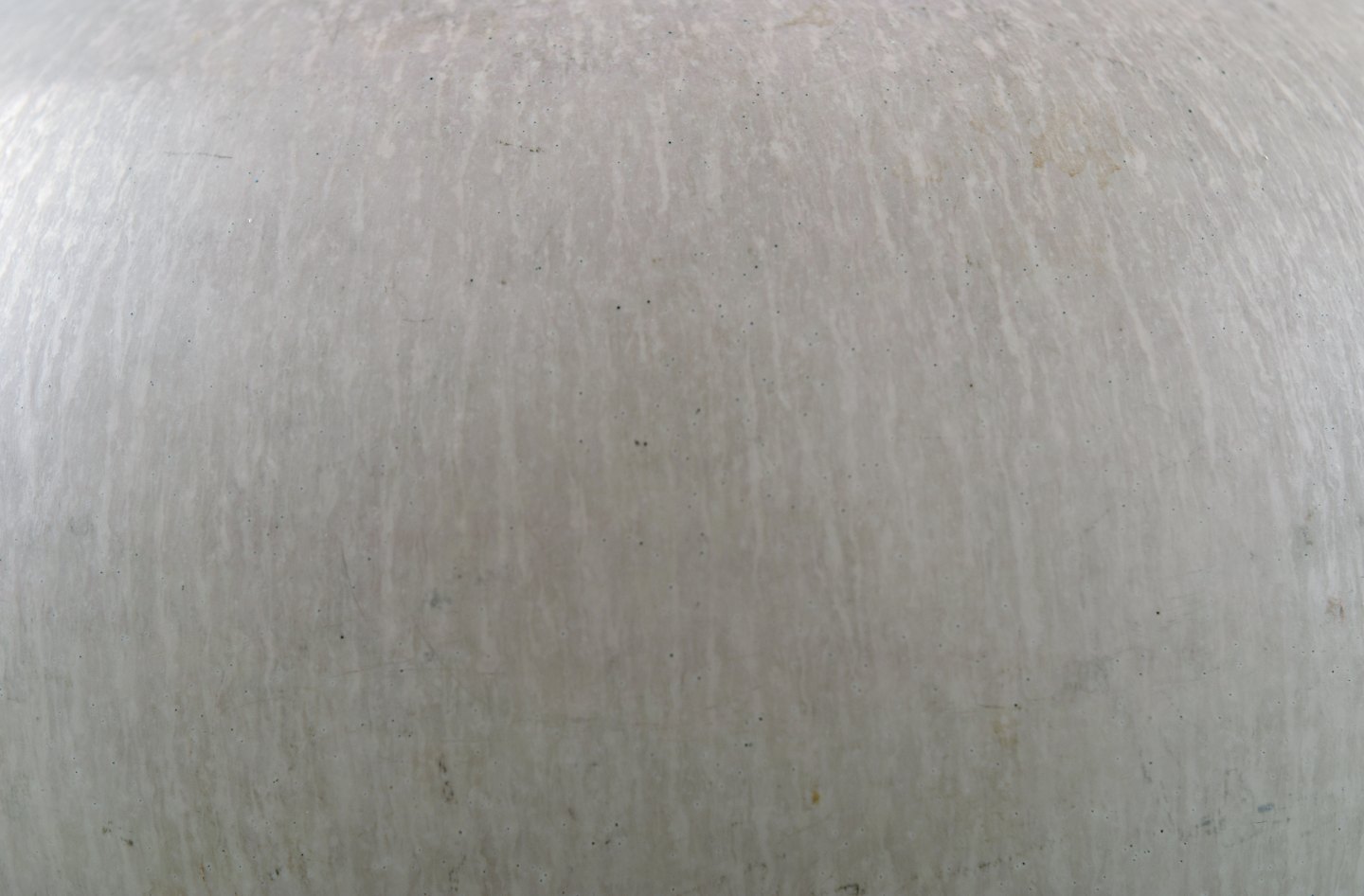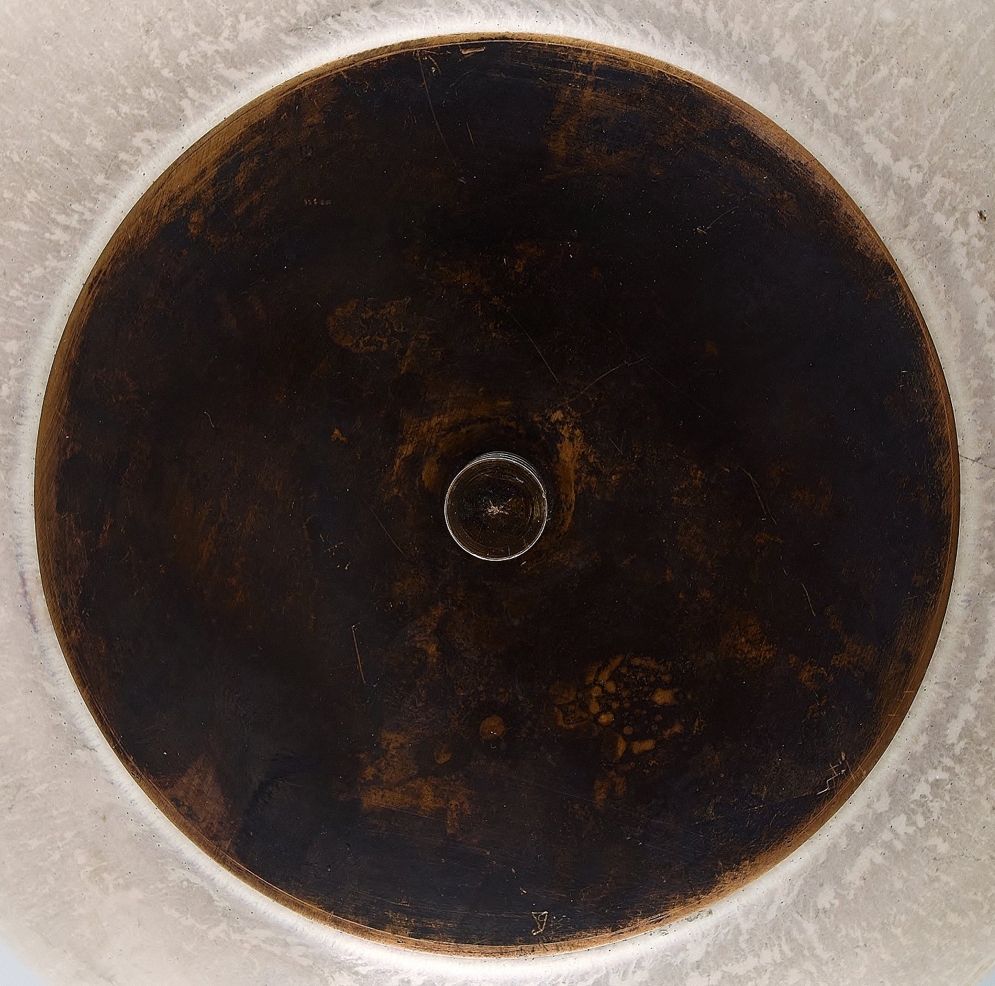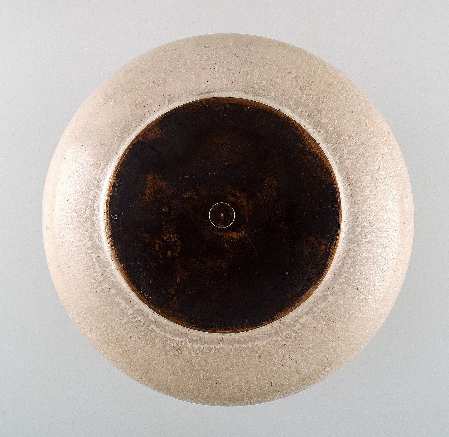 Stor Saxbo vase af stentøj med tilhørende bronzelåg, dekoreret med smuk æggeskalsglasur.