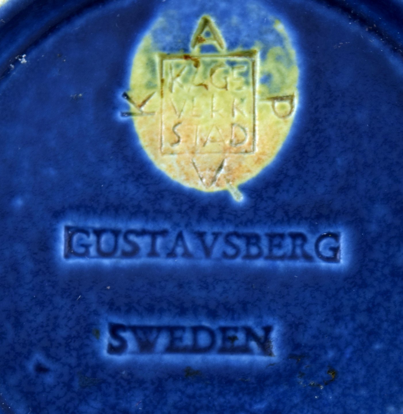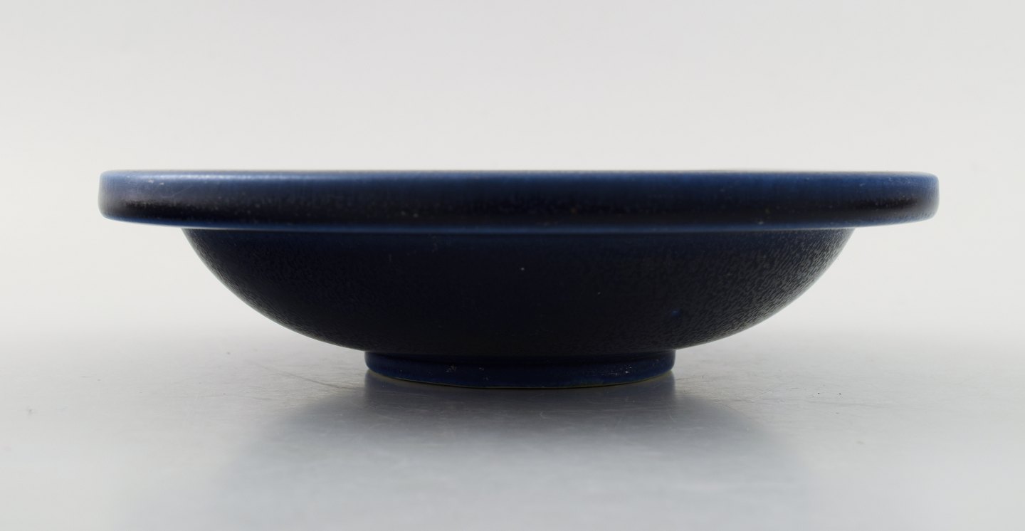 Gustavsberg, Wilhelm Kåge verkstad, blåt keramik fad. Sverige 50/60´erne. I perfekt stand. 9 cm. i diameter. 4,5 cm. højt.