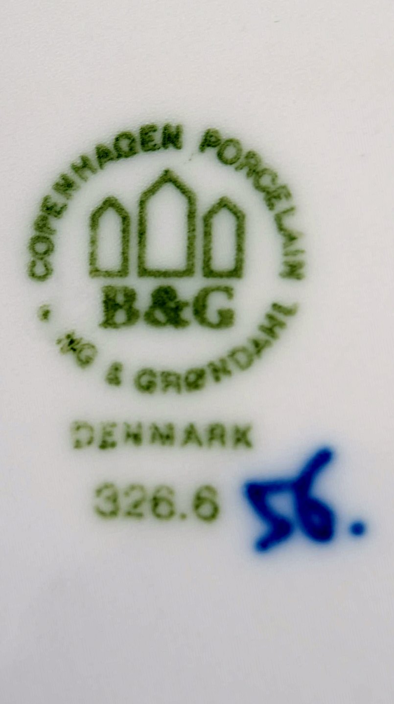 Bing & Grøndahl Musselmalet nr. 326.6. 12 tallerkener med gennembrudt kant. Måler 22 cm. I perfekt stand, 1. sortering. 12 stk på lager.