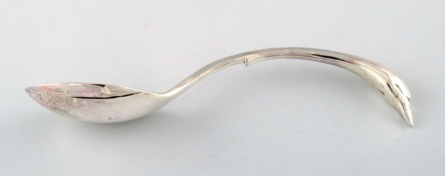 "Svanen" sauce/sovseskål med sauceske i forsølvet messing, designet af Christian Fjerdingstad for Christofle (Gallia.)