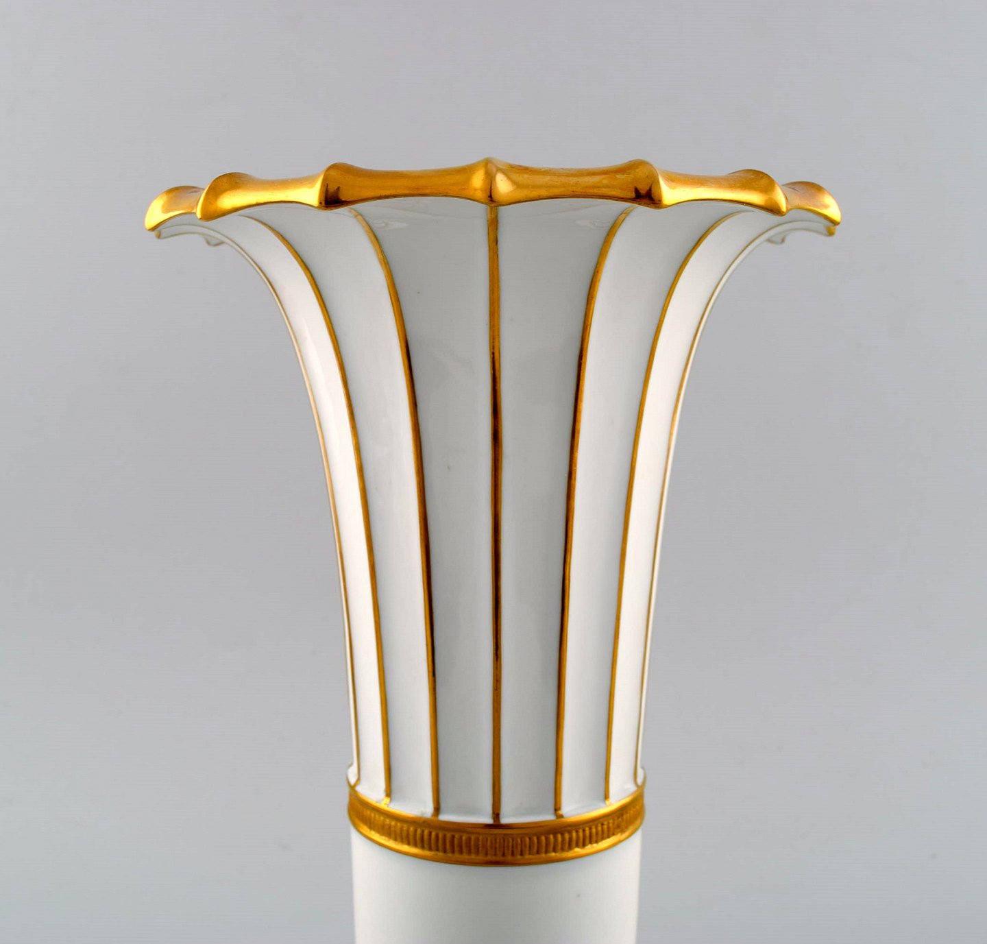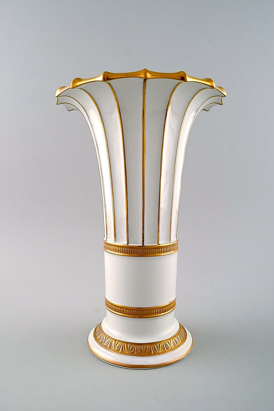 Royal Copenhagen vase med gulddekoration. Trompetformet.