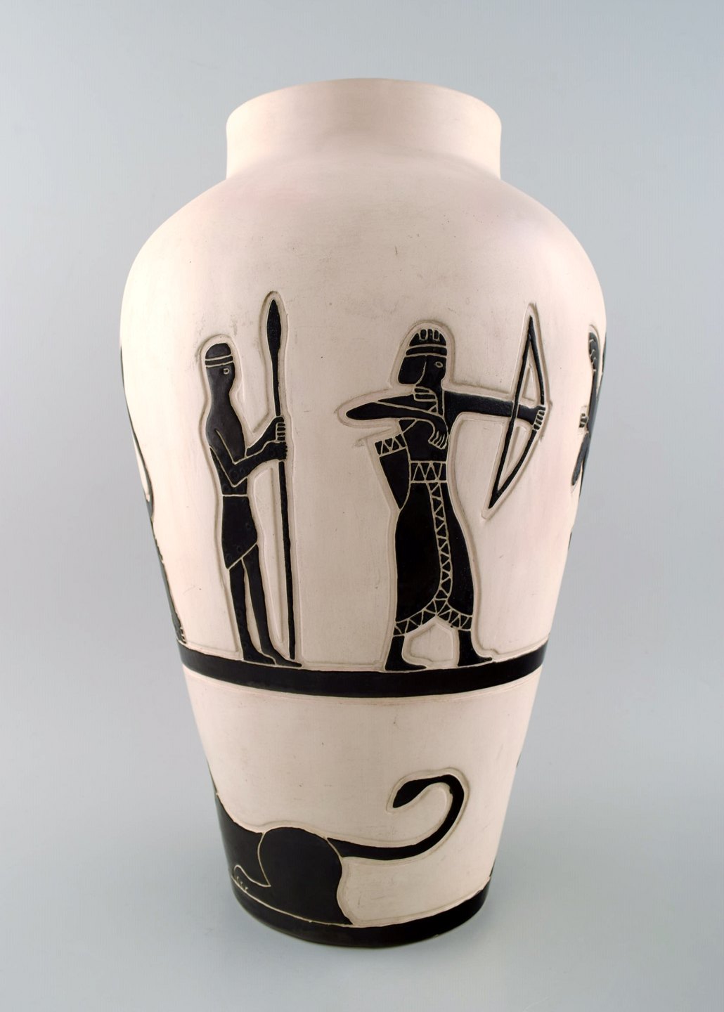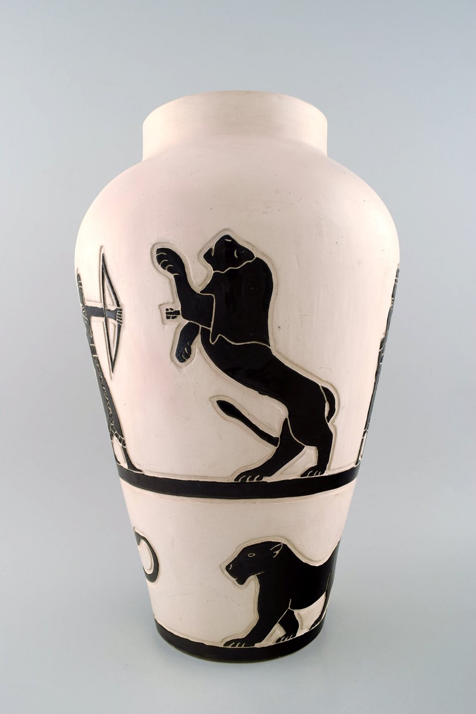 Robert Loiseleur for Lezoux, fransk keramiker. Stor gulvvase dekoreret med klassiske motiver. 1950´erne. Stemplet. I perfekt stand. Måler : 45 cm. x 25 cm.