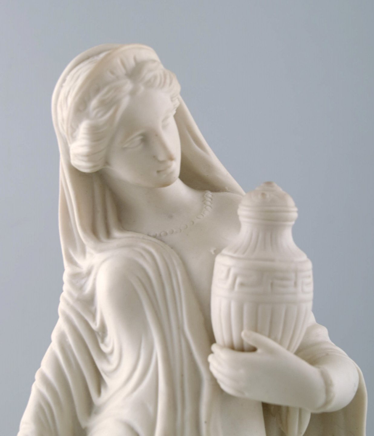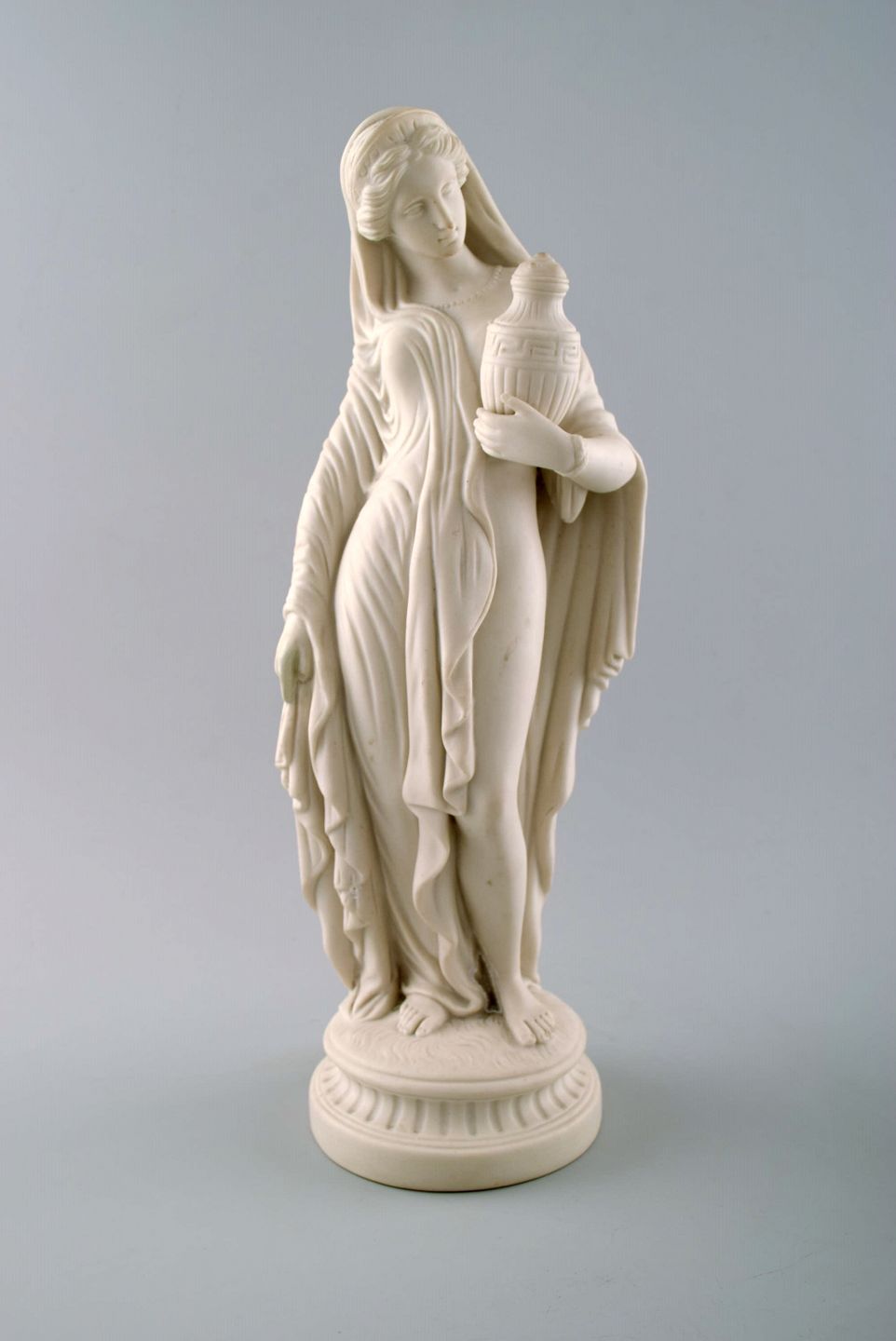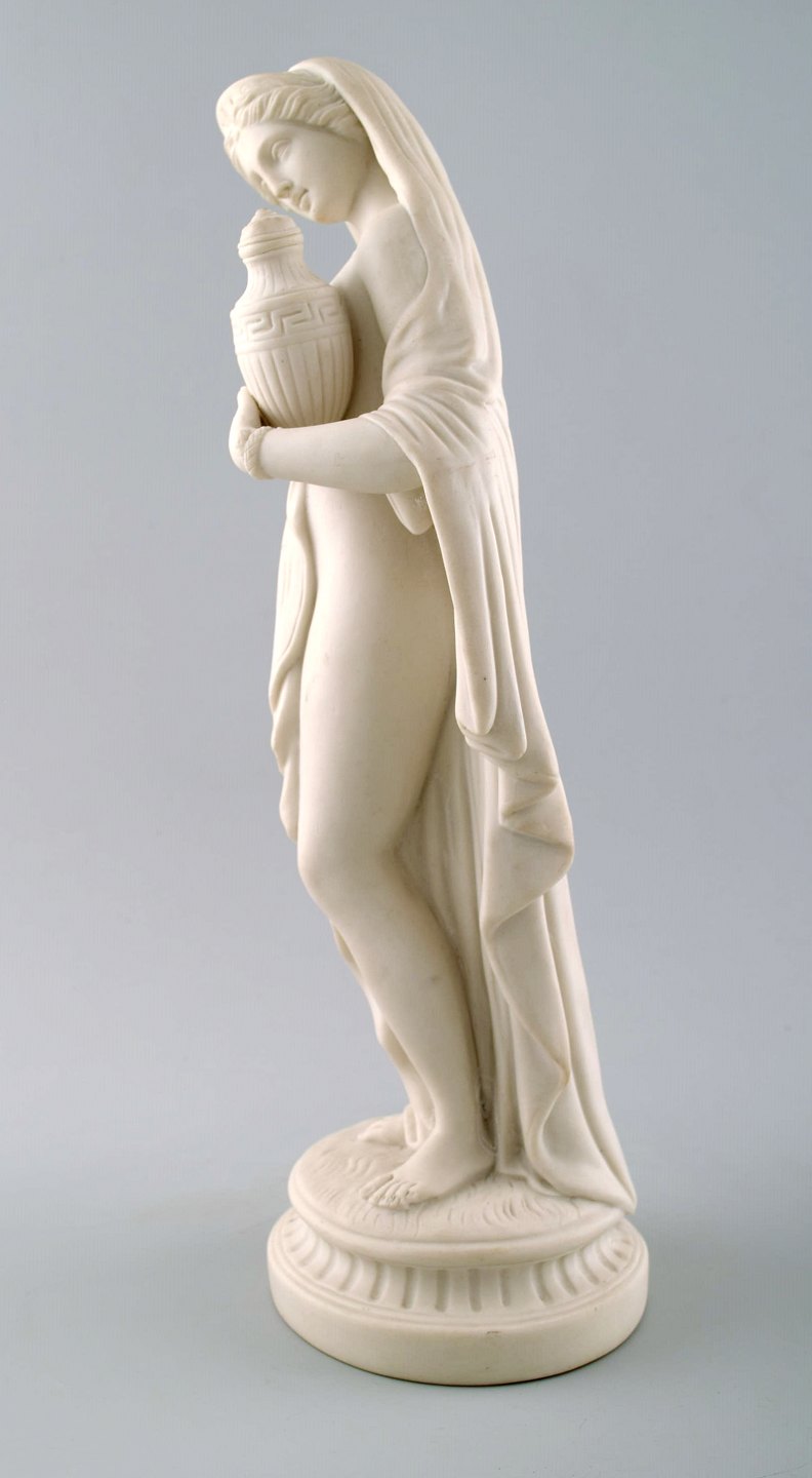 Stor engelsk Minton biscuit figur af kvinde. Smuk klassisk figur af høj kvalitet. Tidligt 1900-tallet. Måler 33 cm. x 13 cm. I flot stand. Ustemplet.