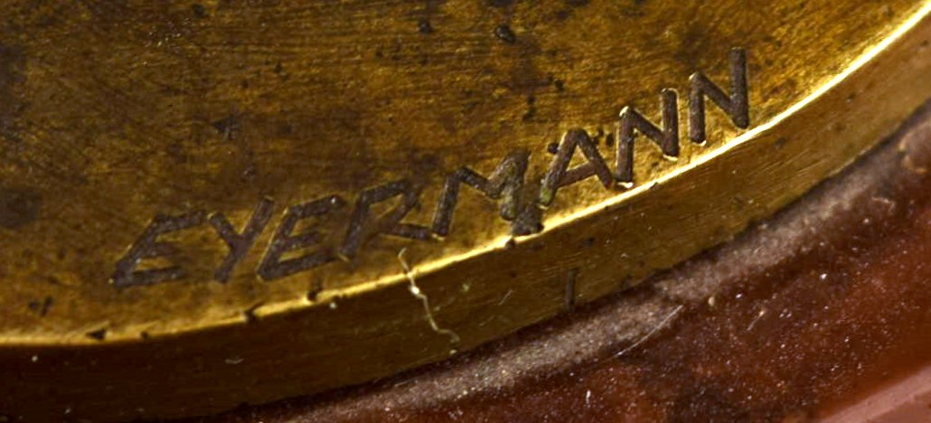 Bruno Eyermann (1888-1961) Tysk billedhugger. Art deco nøgen kvinde i patineret metal på marmorsokkel.