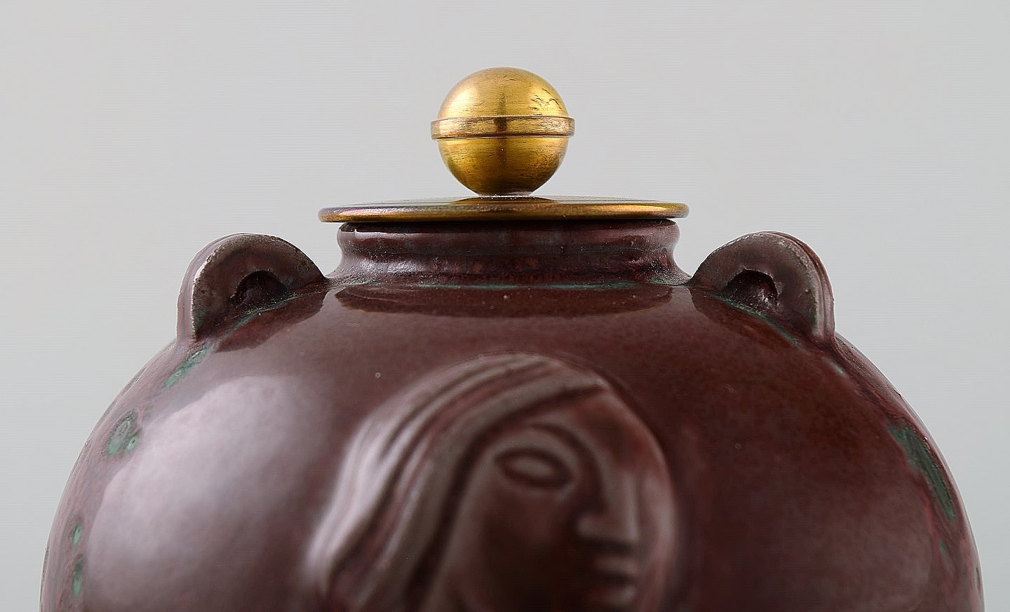 Forsynet med låg og base af bronze. Stemplet monogram KA for Knud Andersen.