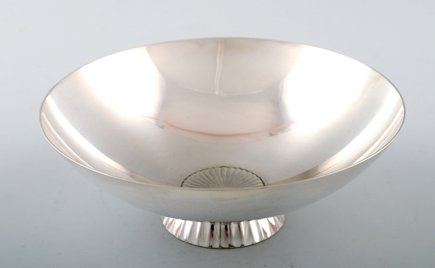 Skål af sterlingsølv med rund riflet fod, designet af Sigvard Bernadotte. Udført i perioden 1945-77. Dessin nr. 823.