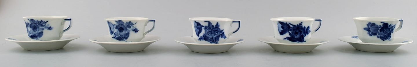 5 sæt Royal Copenhagen Blå Blomst Kantet, espressokopper, (moccakopper). Dekorationsnummer 10/8562. Koppens diameter er 7,3 cm. Perfekt stand. 1. sortering.