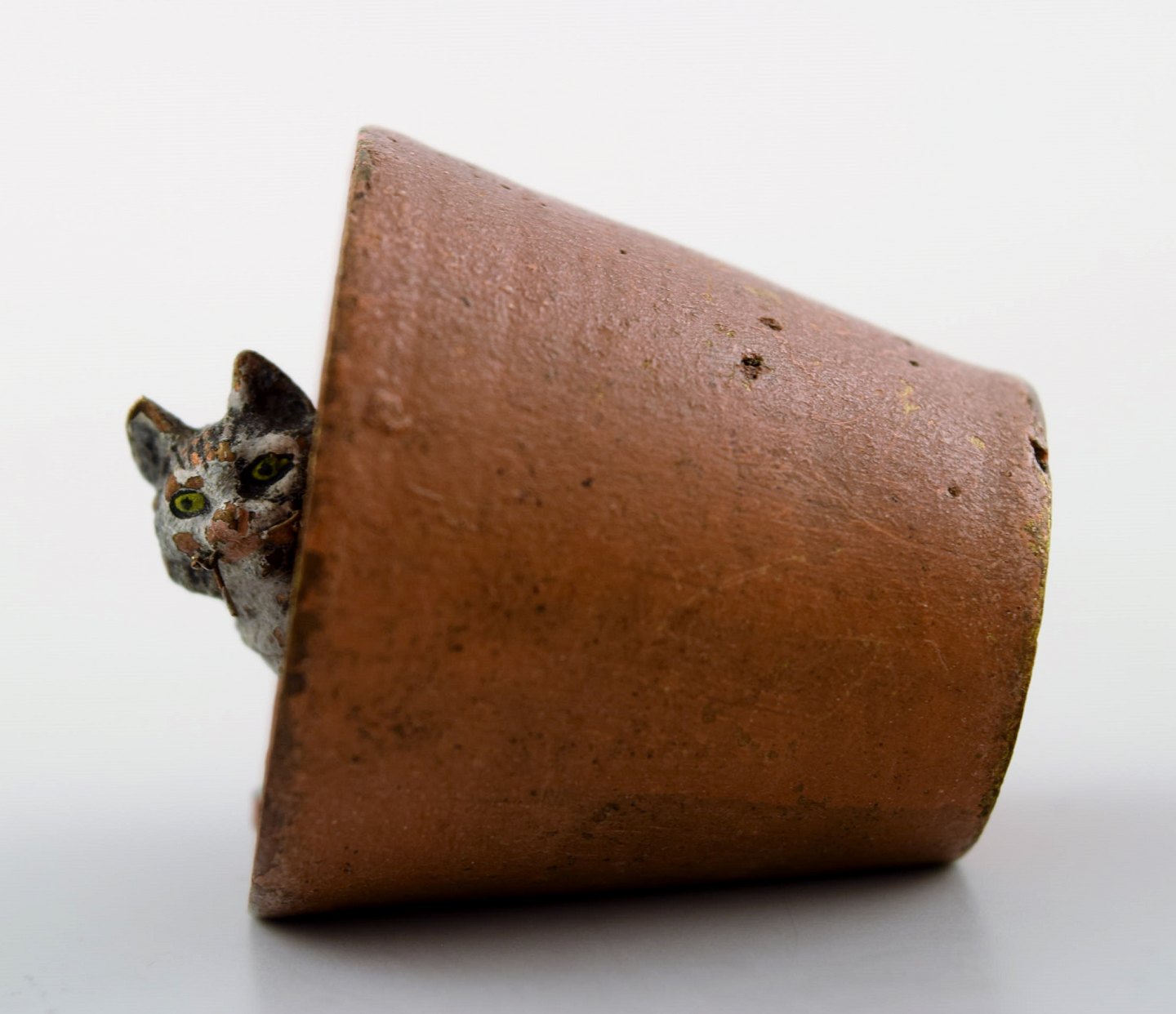 Wienerbronze, kat i spand, bronzefigur af høj kvalitet.