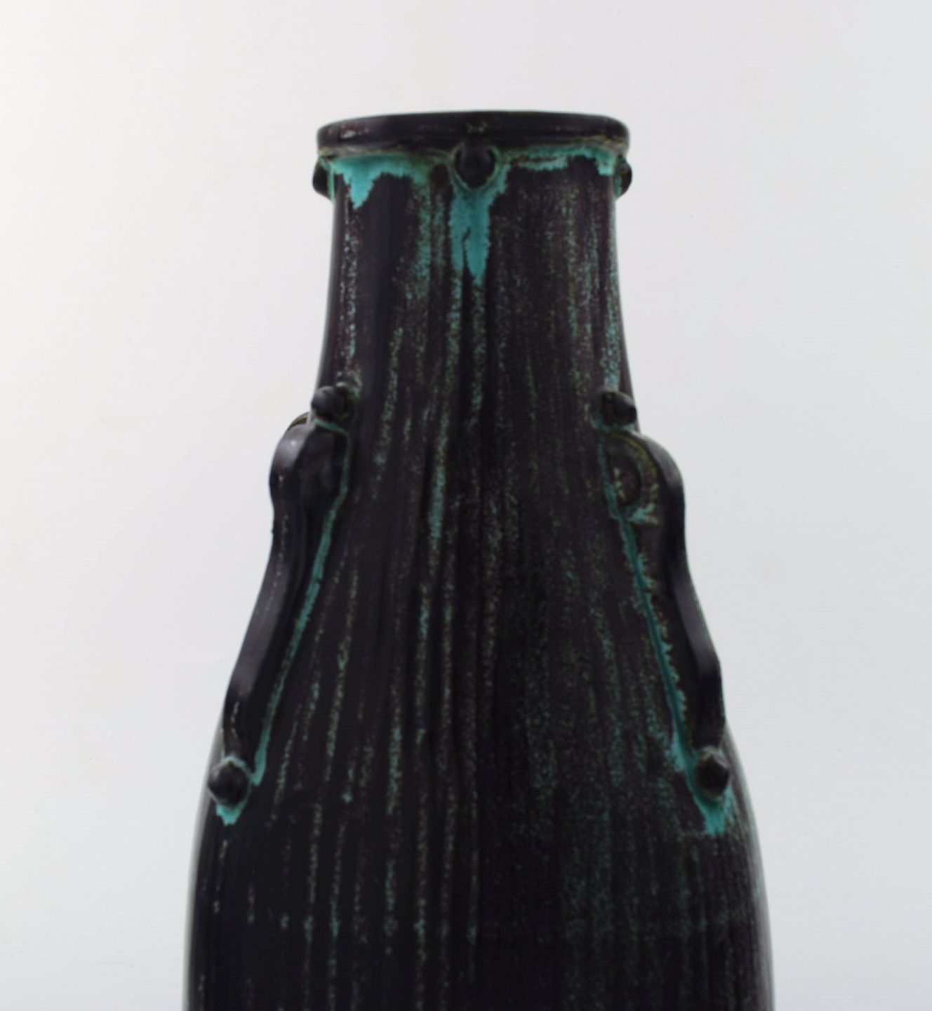 Svend Hammershøi for Kähler, HAK, glaseret stentøjsvase, 1930'erne. Designet af Svend Hammershøi. Turkisgrøn dobbeltglasur. Måler 32 cm. x 14 cm. Stemplet. I perfekt stand.