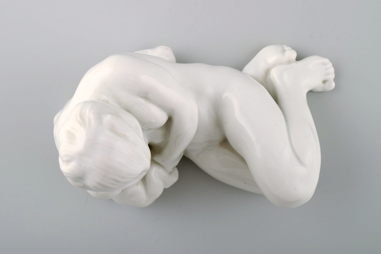 Sjælden Bing & Grøndahl/ B&G, blanc de chine porcelænsfigur af ung nøgen kvinde med barn og fisk af Kai Nielsen. Figurnummer 29. Måler 19 cm. x 12 cm. 1. sortering, i perfekt stand.