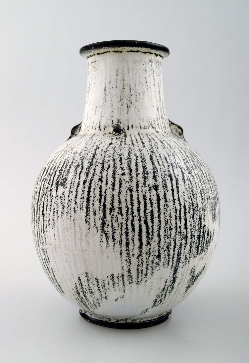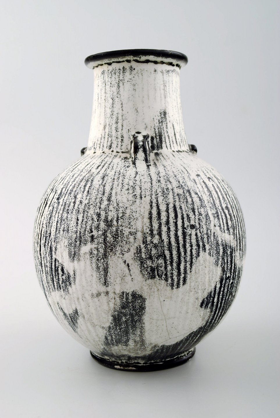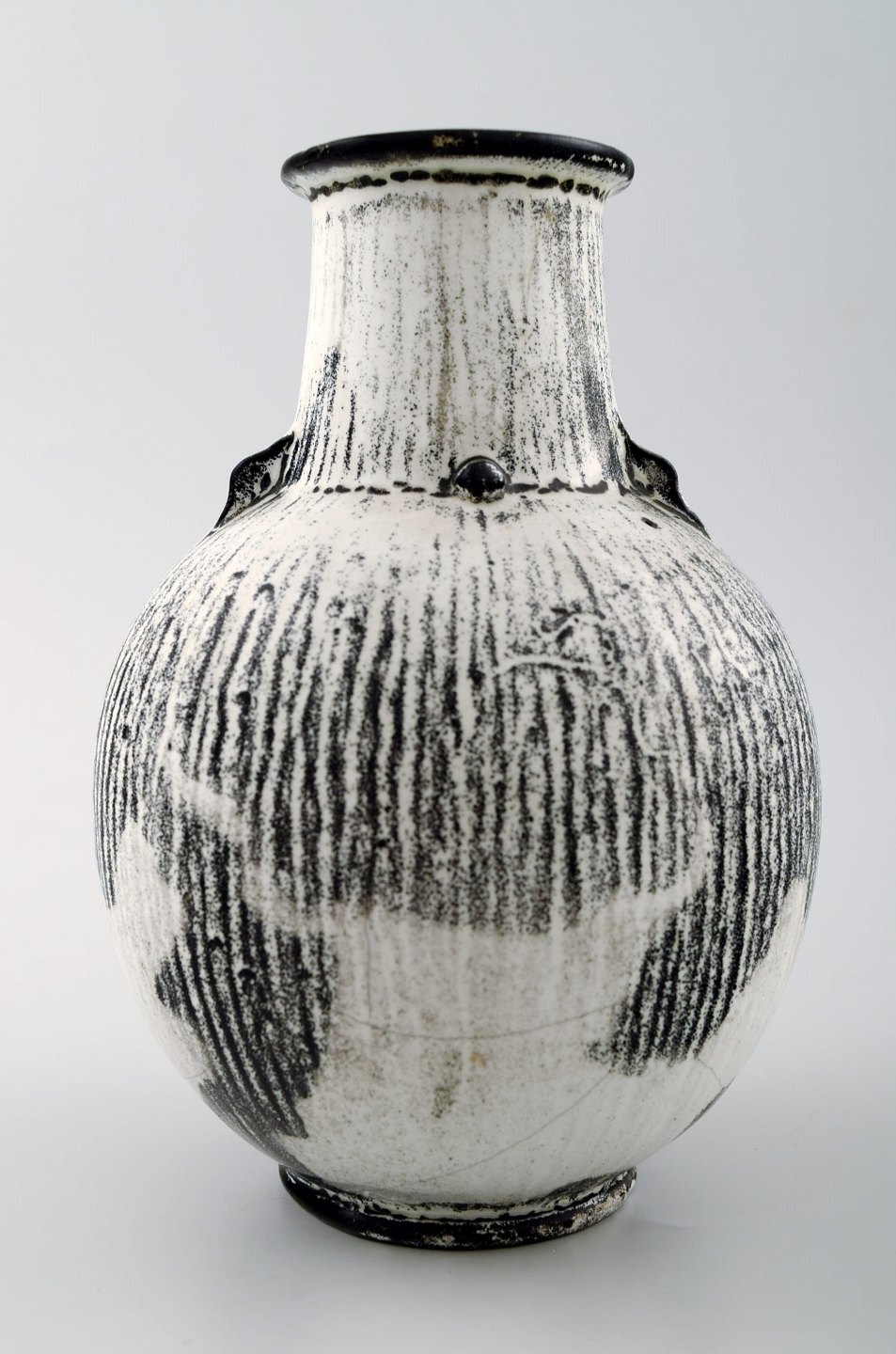 Kähler, HAK, glaseret keramikvase, 1930'erne. Designet af Svend Hammershøi. Glasur i sort og grå. Måler 15 x 11,5 cm. Stemplet. I perfekt stand.