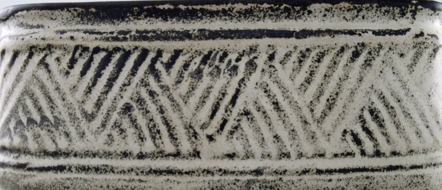 Kähler, HAK, et par glaseret stentøjskåle/urtepotteskjulere. Nils Kähler. 1960´erne. Gråsort dobbeltglasur. I perfekt stand. Stemplet. Måler 17 cm. x 10 cm. x 2 cm.