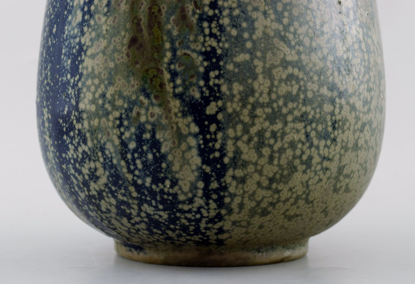 Arne Bang keramik isspand. Stemplet AB. Glasur i blågrønne nuancer. I perfekt stand. Måler: 24 x 21 cm. inkl. hank.