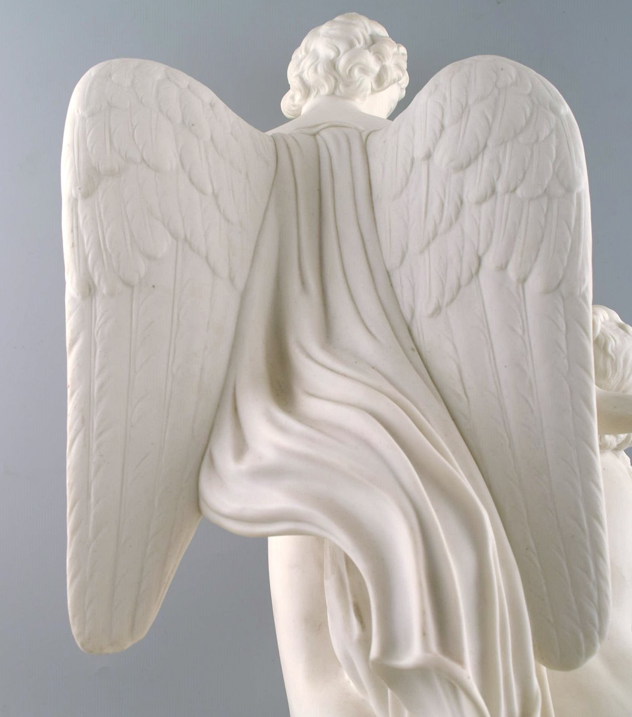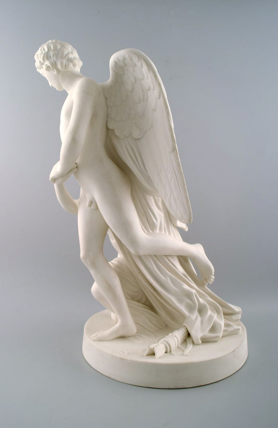 Klassisk skulptur i biscuit på sokkel, Gustavsberg, sent 1800-tallet.