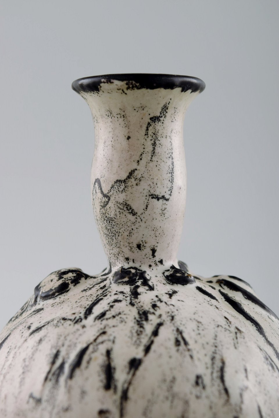 Kähler, HAK, glaseret vase, 1930'erne. Designet af Svend Hammershøi. Glasur i sort og grå. Måler 13 x 9,5 cm. Stemplet. I perfekt stand.