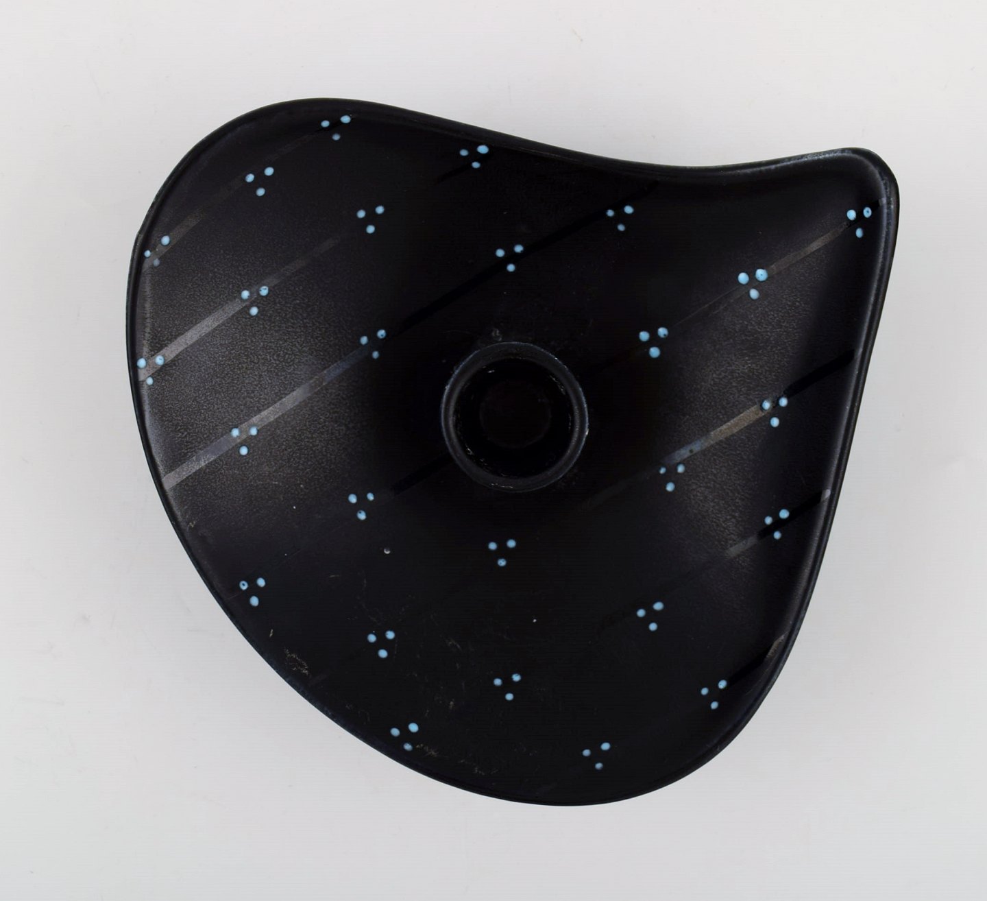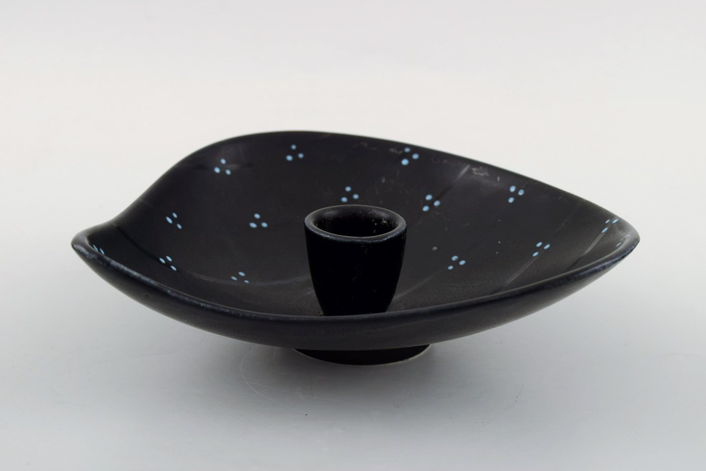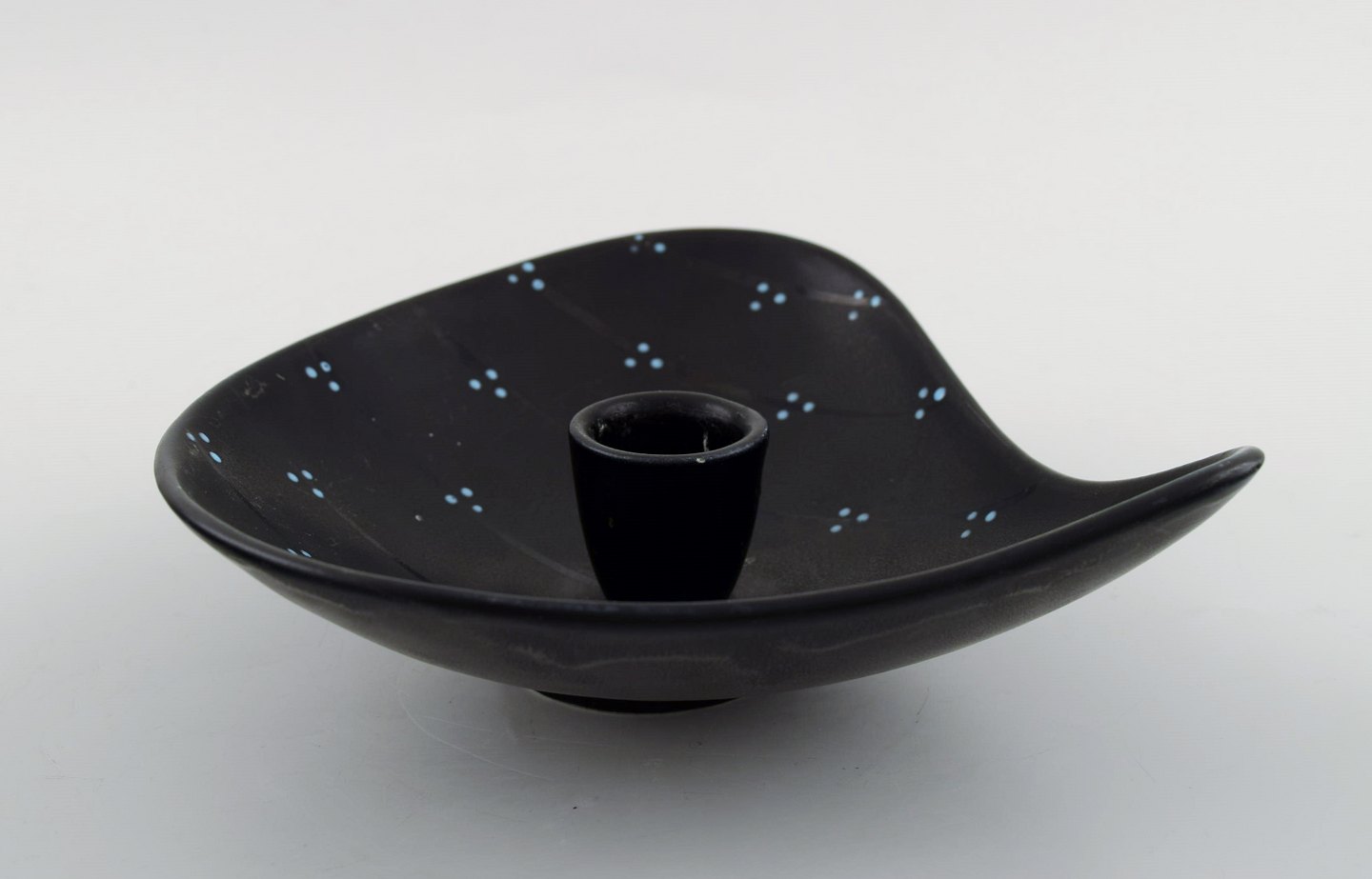 Lillemor Mannerheim for Upsala-Ekeby/Gefle "Pärlor" lysestage, blåglaseret. Stemplet. I perfekt stand. Måler 16,5 x 16,5 x 4 cm.