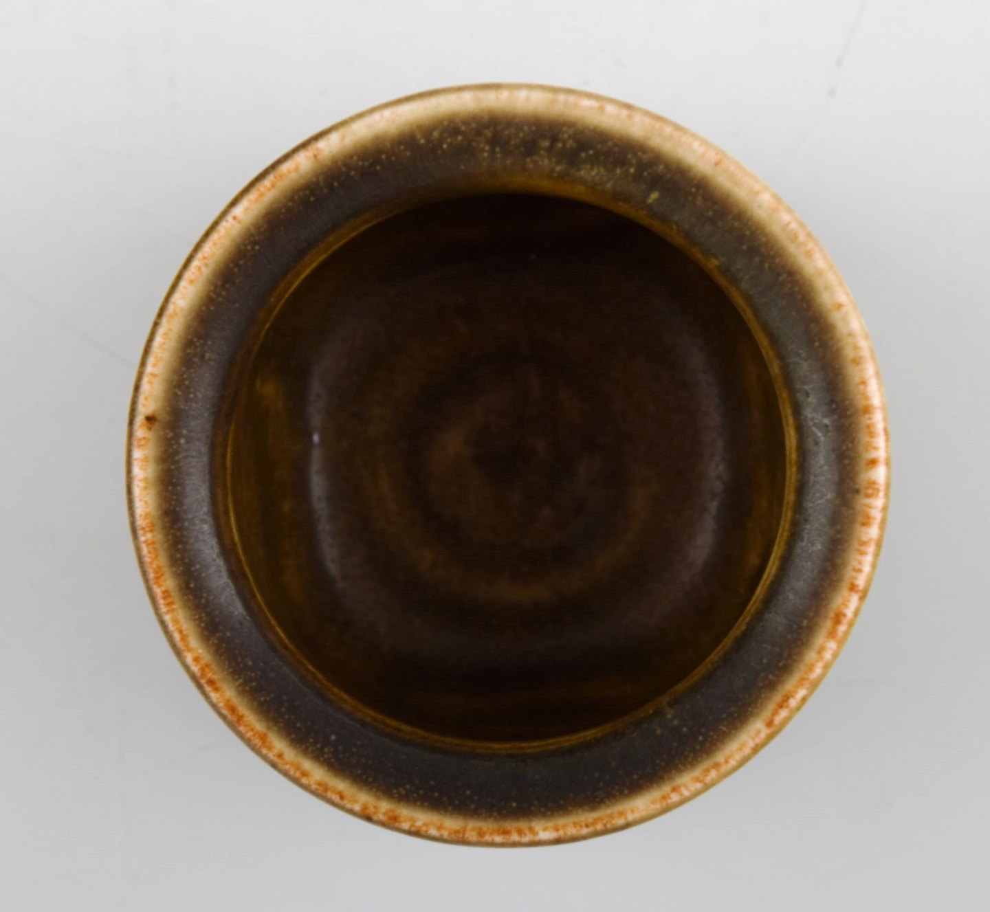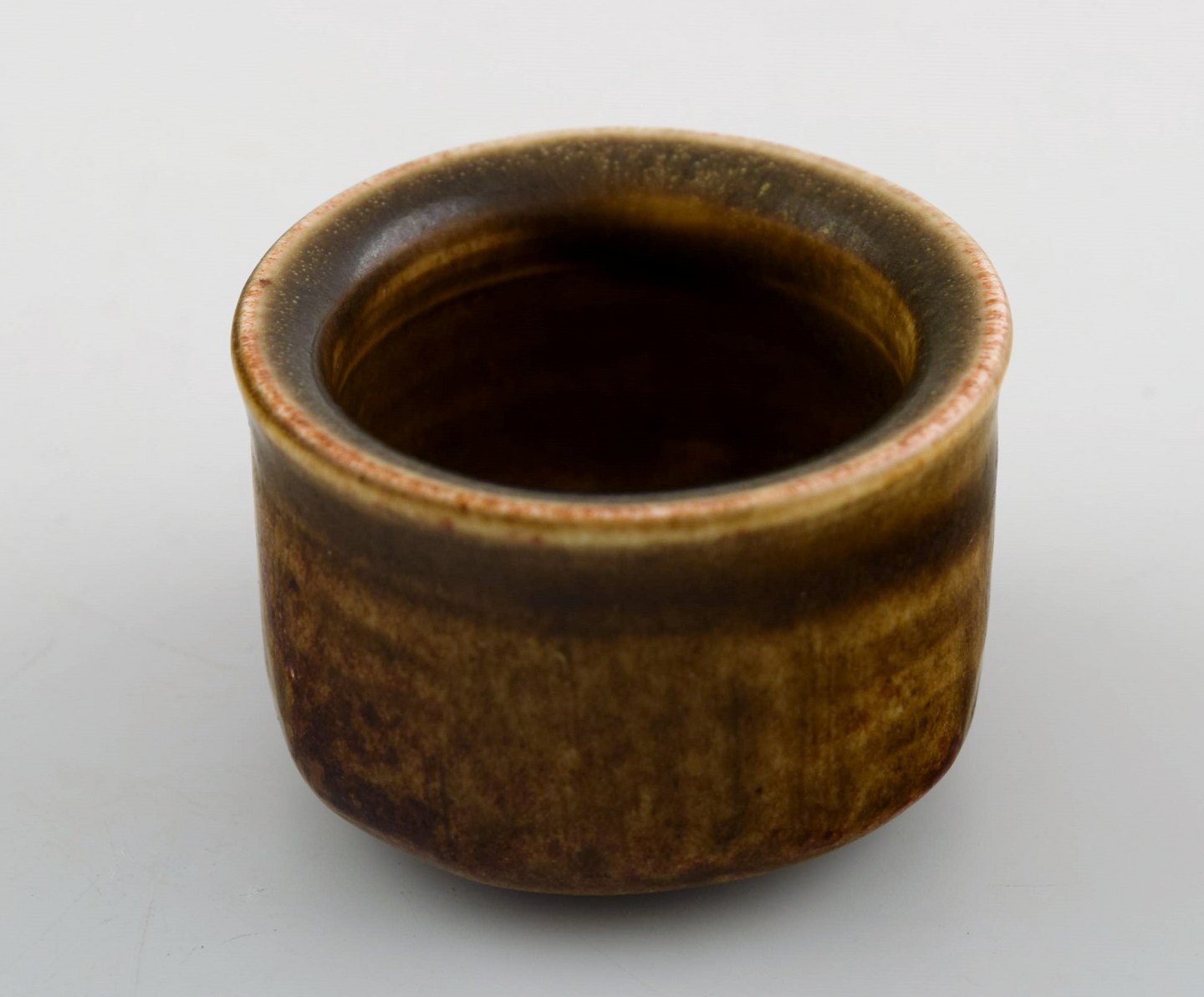 Edith Sonne Bruun for Saxbo, lille keramik vase, smuk glasur. Stemplet. I perfekt stand. Måler 5,5 x 4 cm.