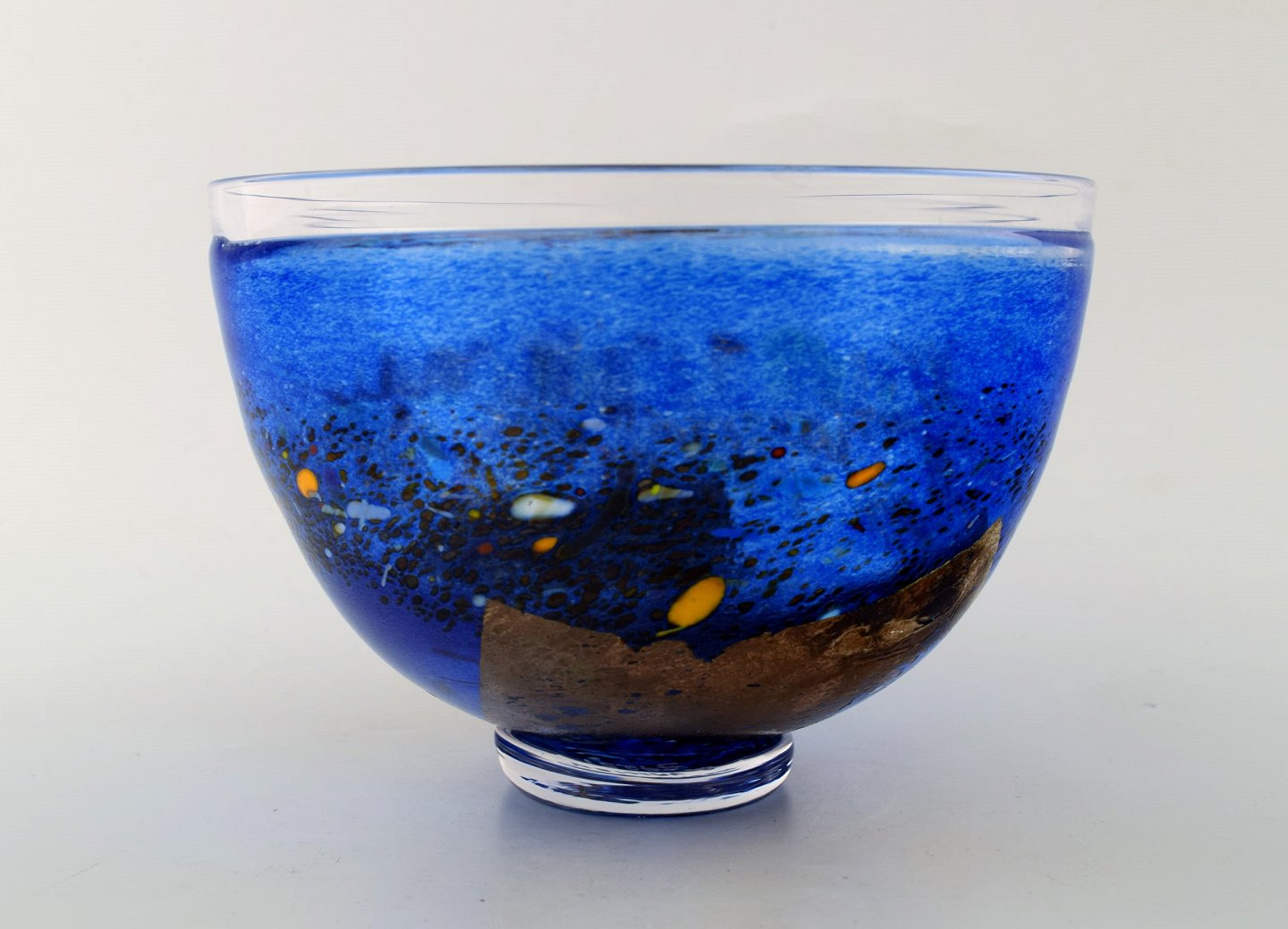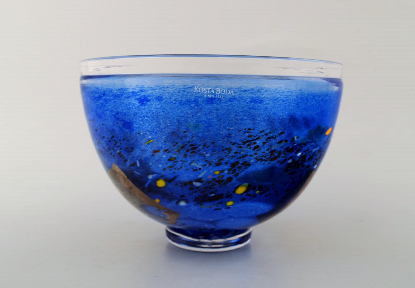 Kunstglasskål, designet af Bertel Vallien, fremstillet af Kosta Boda. I perfekt stand. Signeret. Højde: 11 cm. Bredde: 15,5 cm.