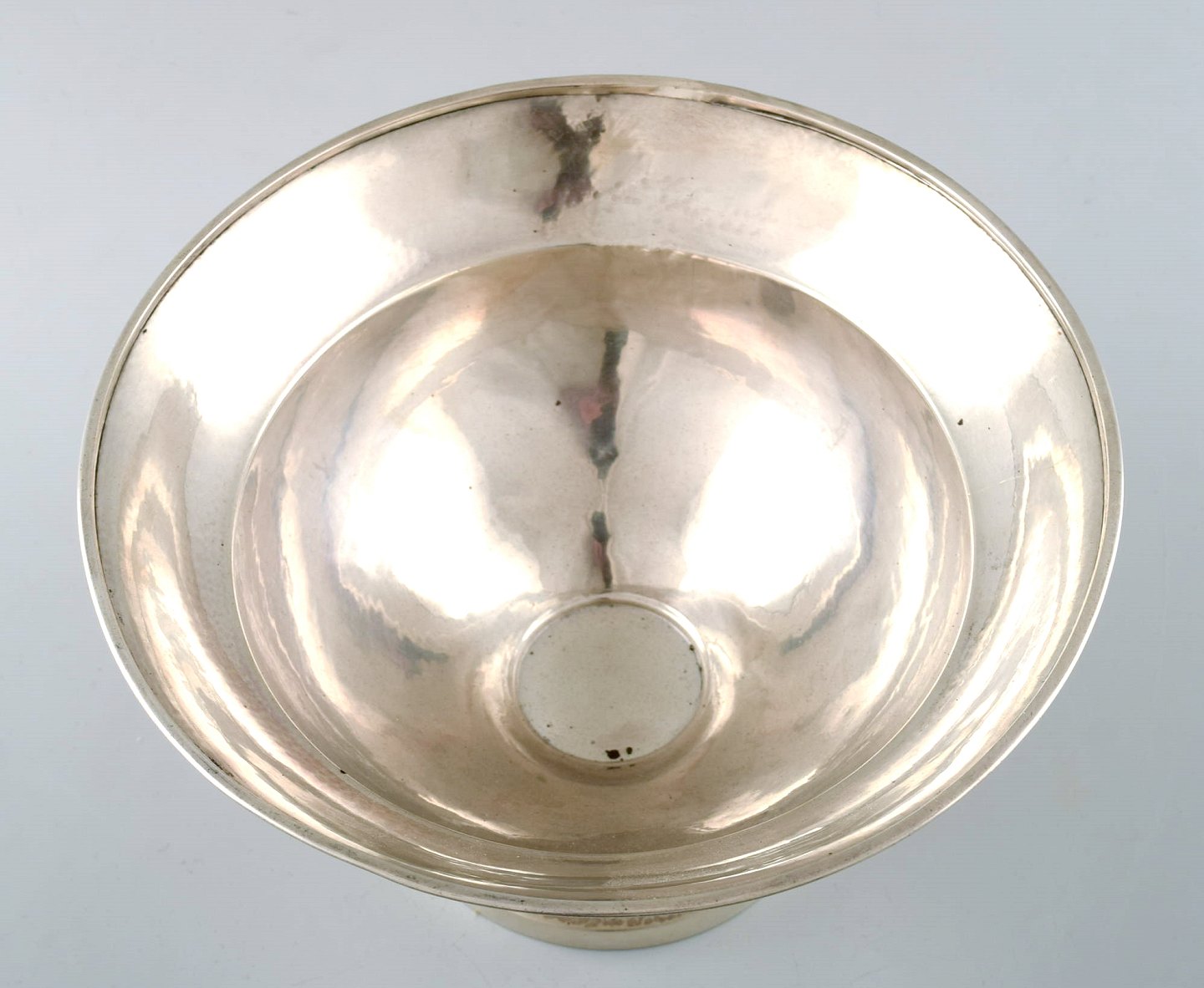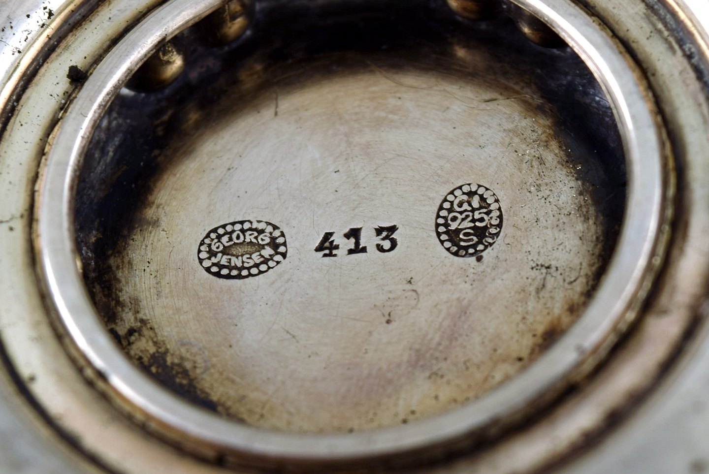 Johan Rohde for Georg Jensen, skål/opsats af let hammerslået sterling sølv. Dessin nummer 413. Fremstillet i perioden 1915 - 1927. Måler : 23 cm. x 13 cm. I flot stand.