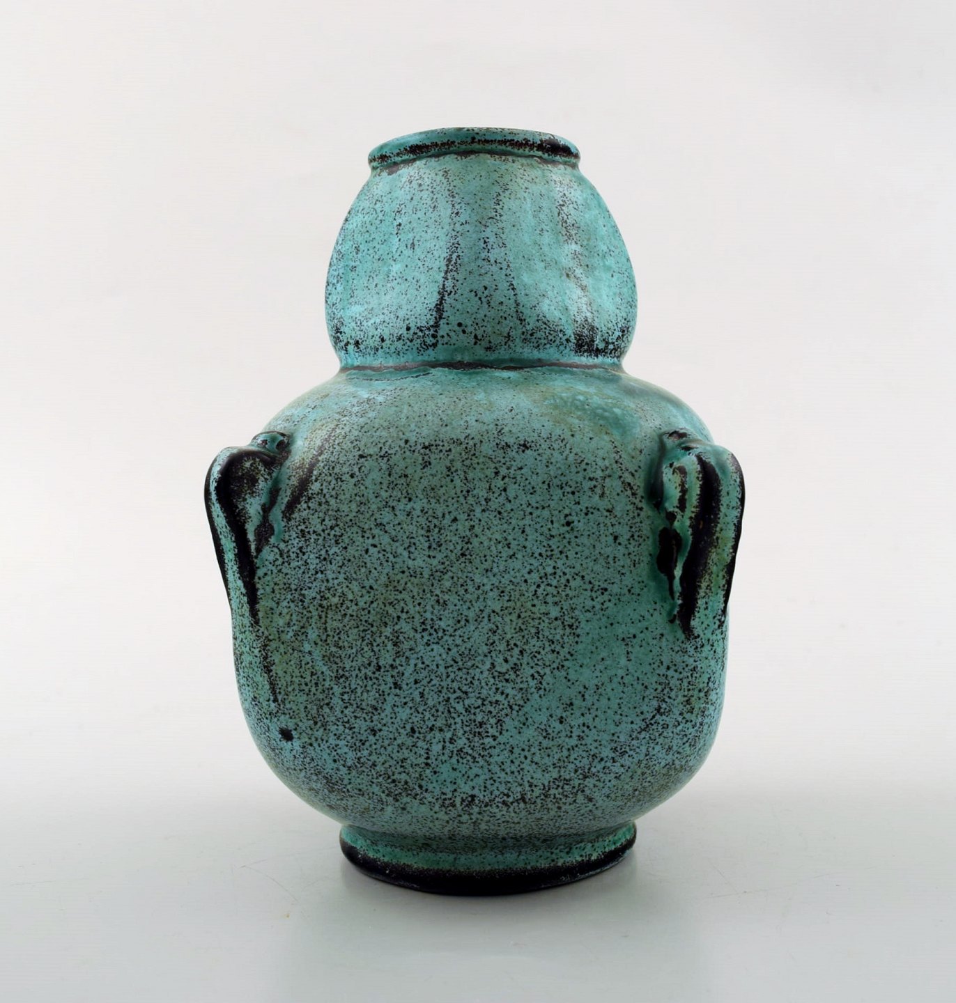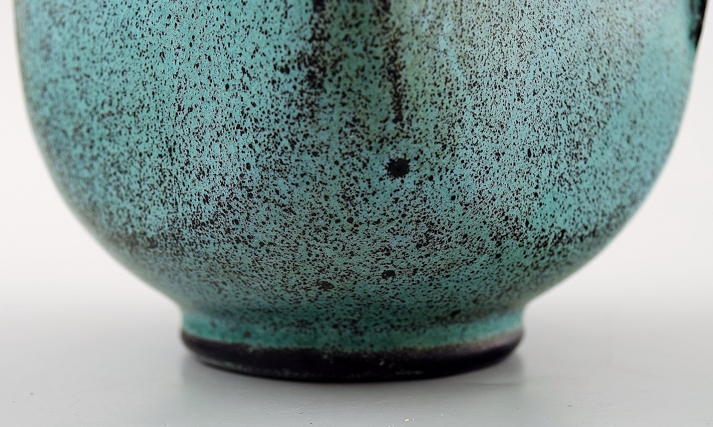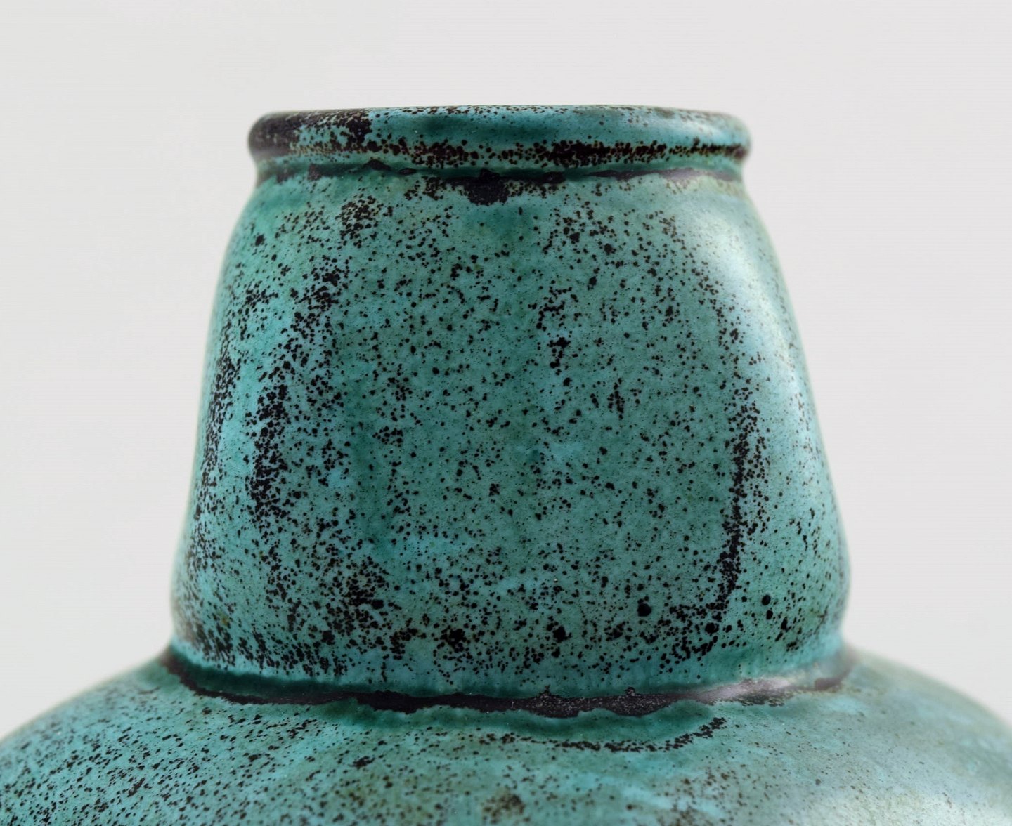 Svend Hammershoi for Kähler, Denmark, glazed stoneware art pottery vase, 1930s. Designed by Svend Hammershoi. Turquoise Green double glaze. Measures 13,5 x 9 cm. Marked. In perfect condition.