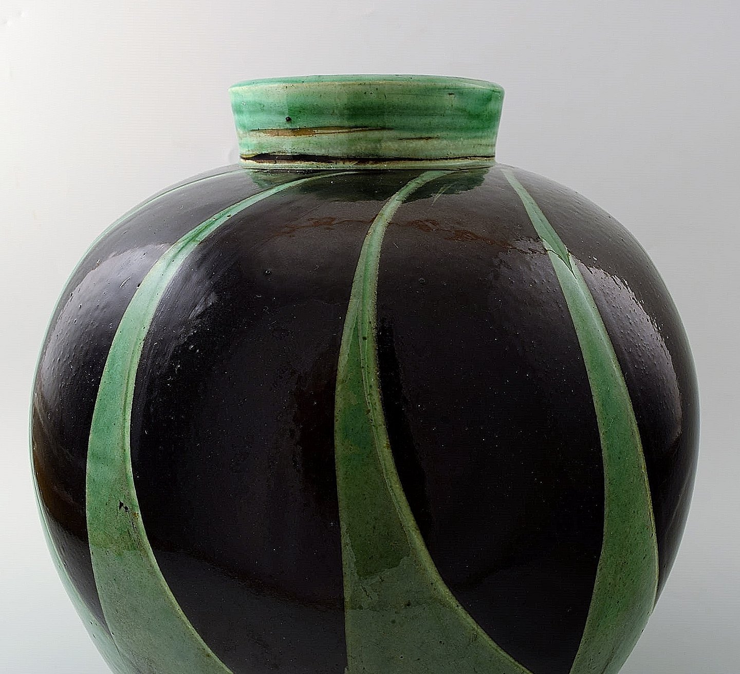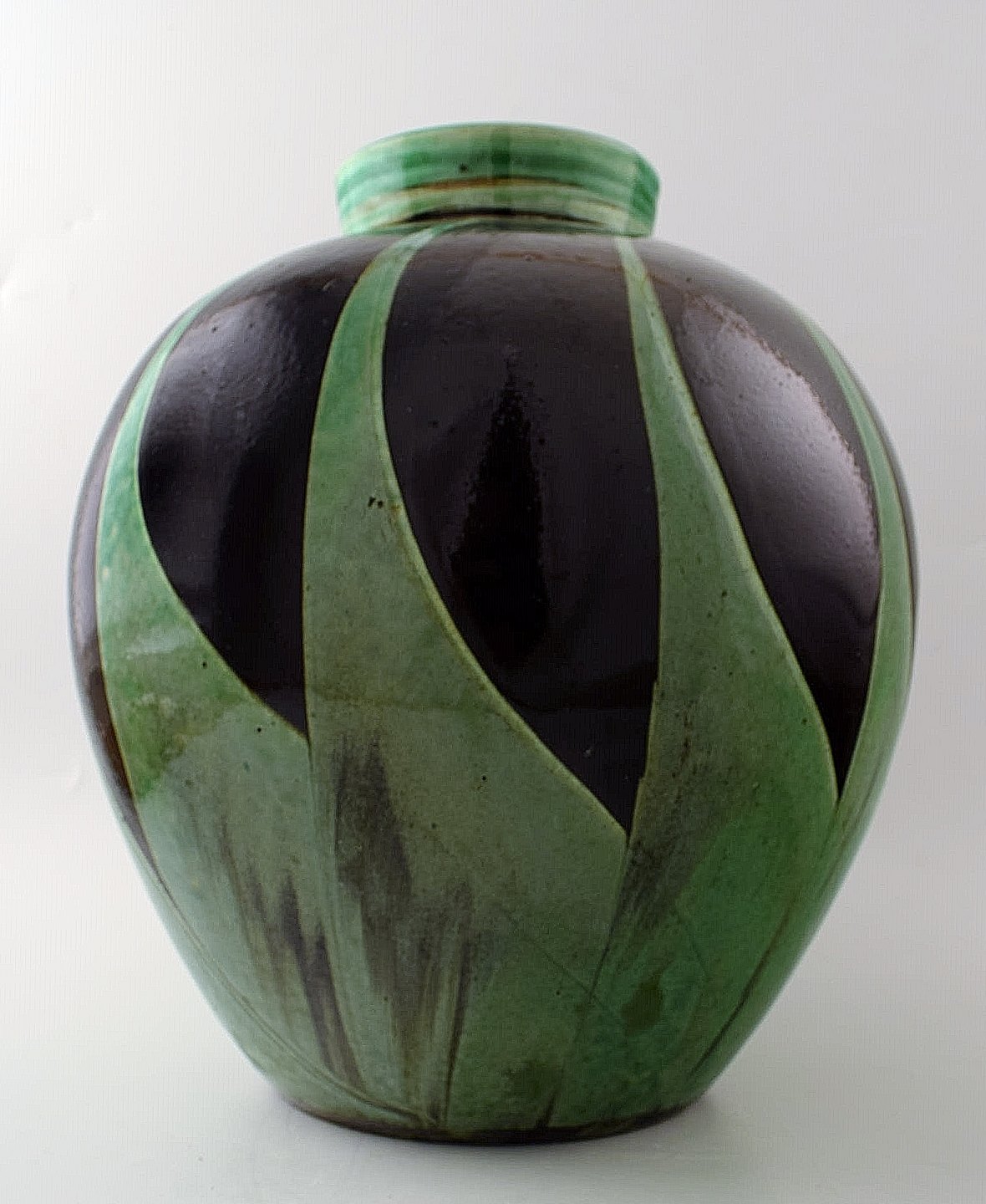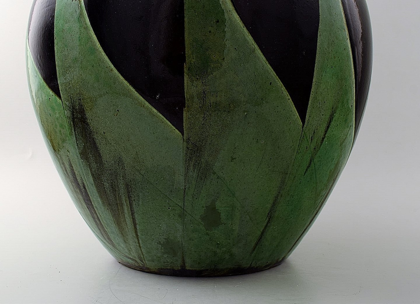Kähler, HAK, stor glaseret stentøjsgulvvase i moderne design. 1940´erne. Stemplet. Måler : 37 cm. x 30 cm. I perfekt stand.