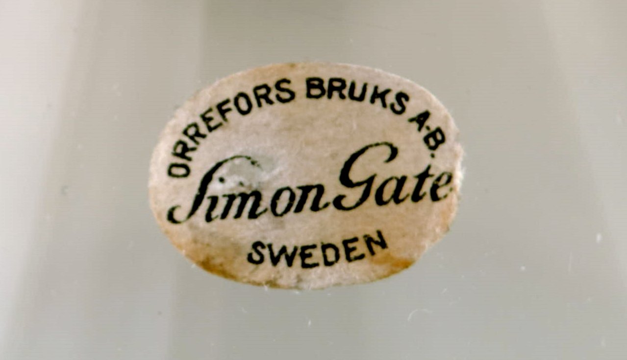 SIMON GATE for Orrefors, Art deco kunstglas 4 p. likørsæt med karaffel på bakke i røgfarvet.