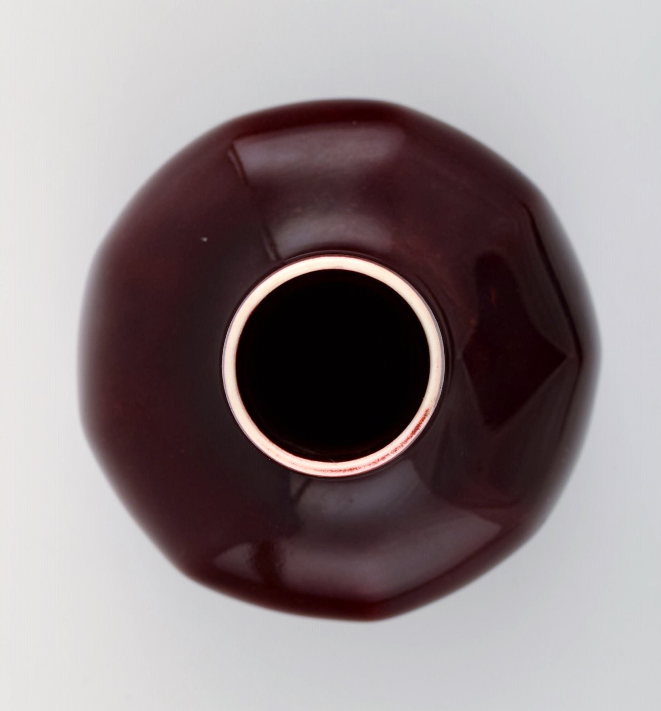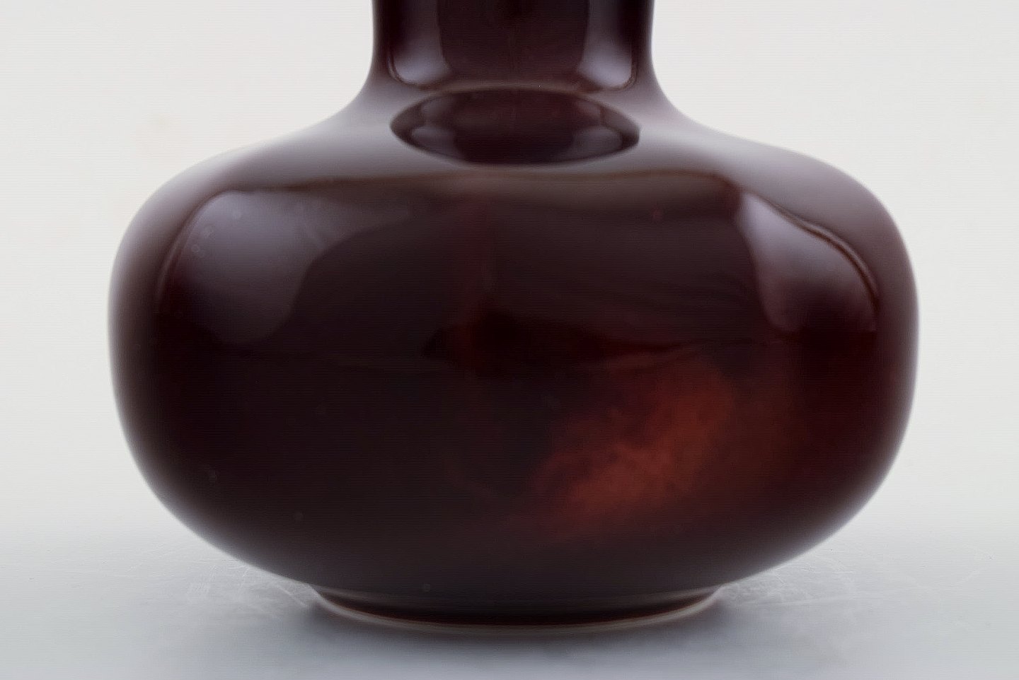 Rare Lisbeth Munch Petersen porcelain vase, Bing & Grondahl. Narrow neck. Denmark mid 20 c. Oxblood glaze. Measures: 13 x 12 cm. Stamped. In perfect condition, 1st. Assortment.