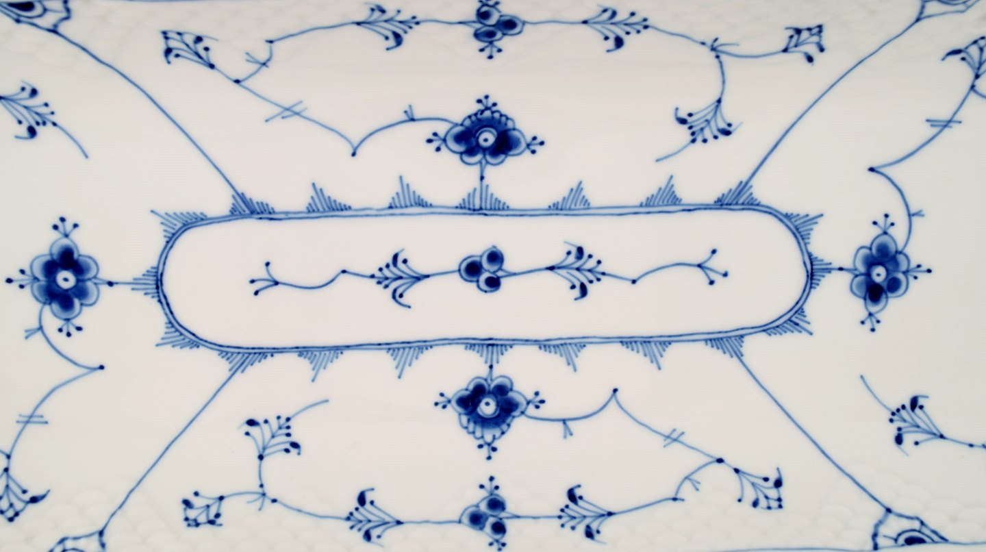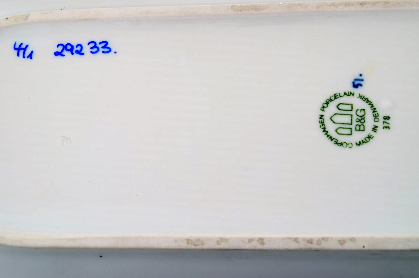 Bing & Grøndahl, B&G musselmalet aflangt sellerifad. Måler : 38 x 15 x 5 cm. Nummer 378. 1. sortering, i perfekt stand.
