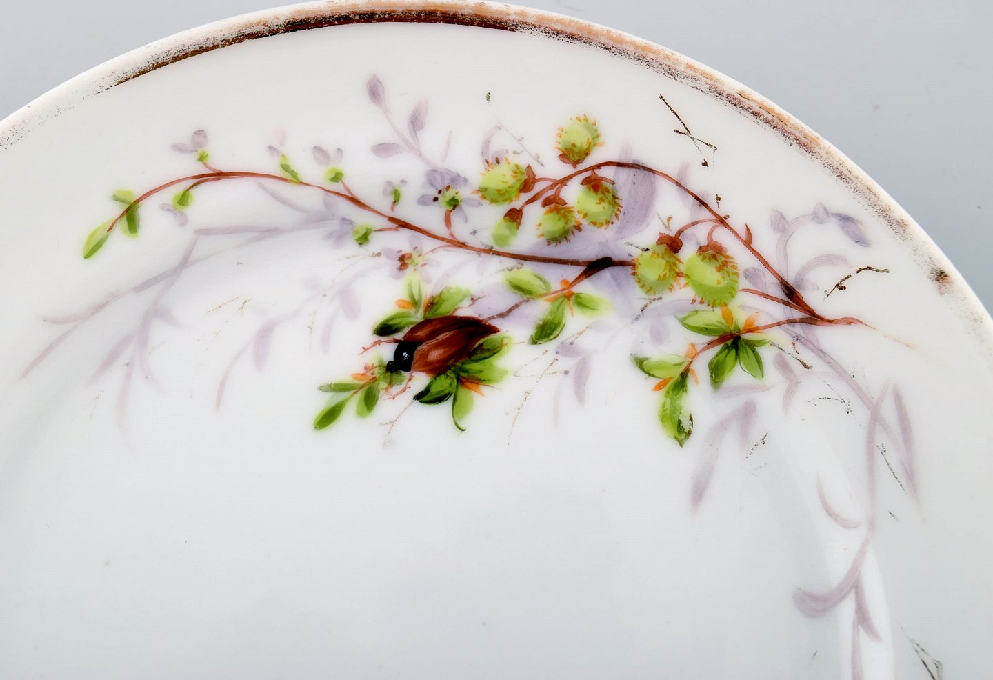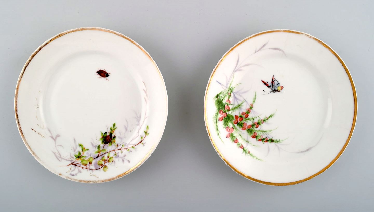 2 antikke b&g bing & grøndahl tallerkener. Håndmalet med sommerfugl og insekt.