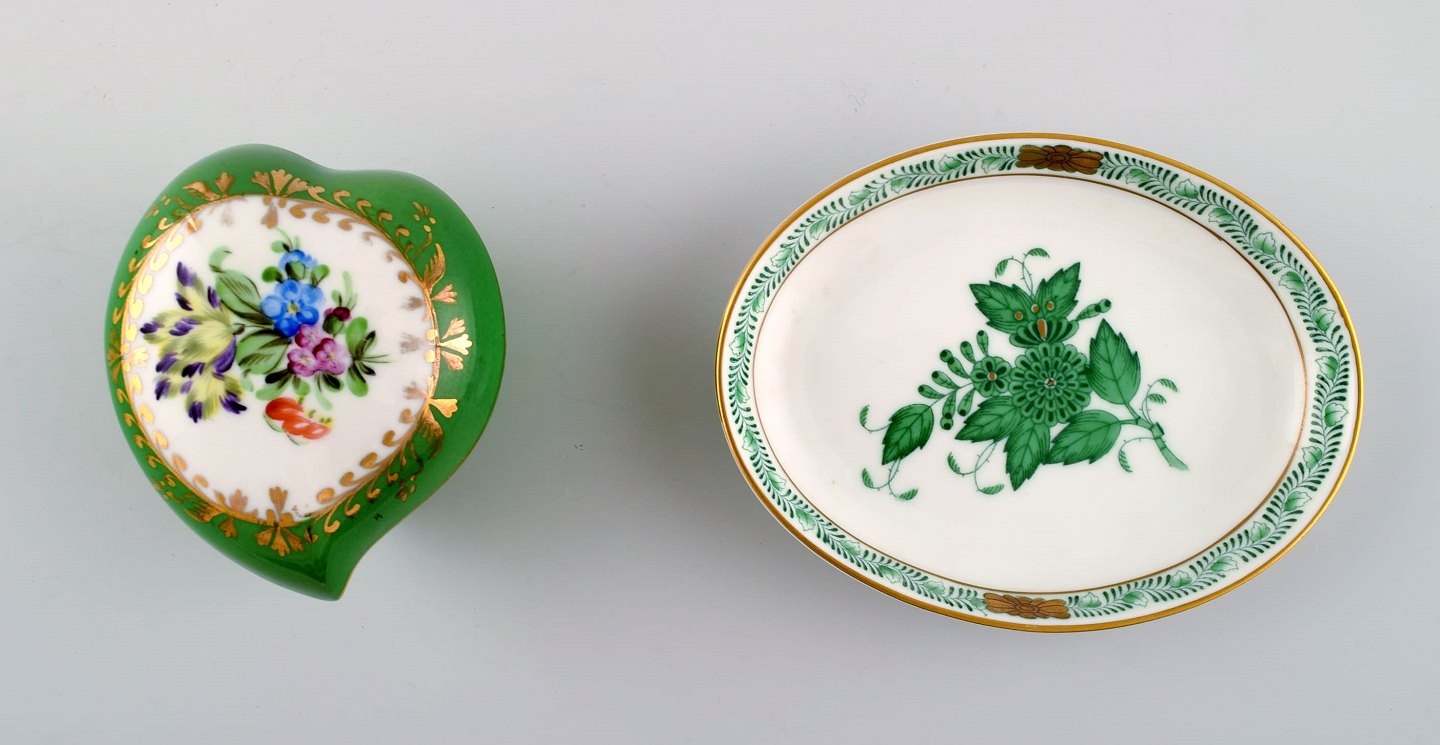 8 Herend, Ungarn lågvaser/vaser/fade dekoreret med blomster, guldkant, porcelæn.
