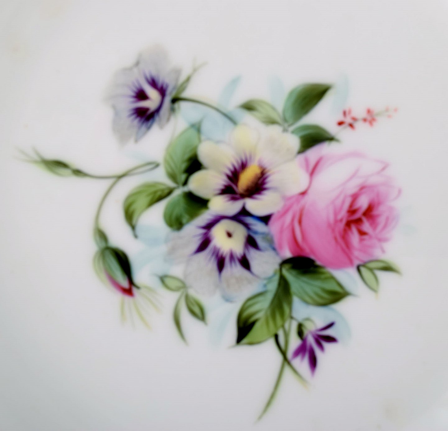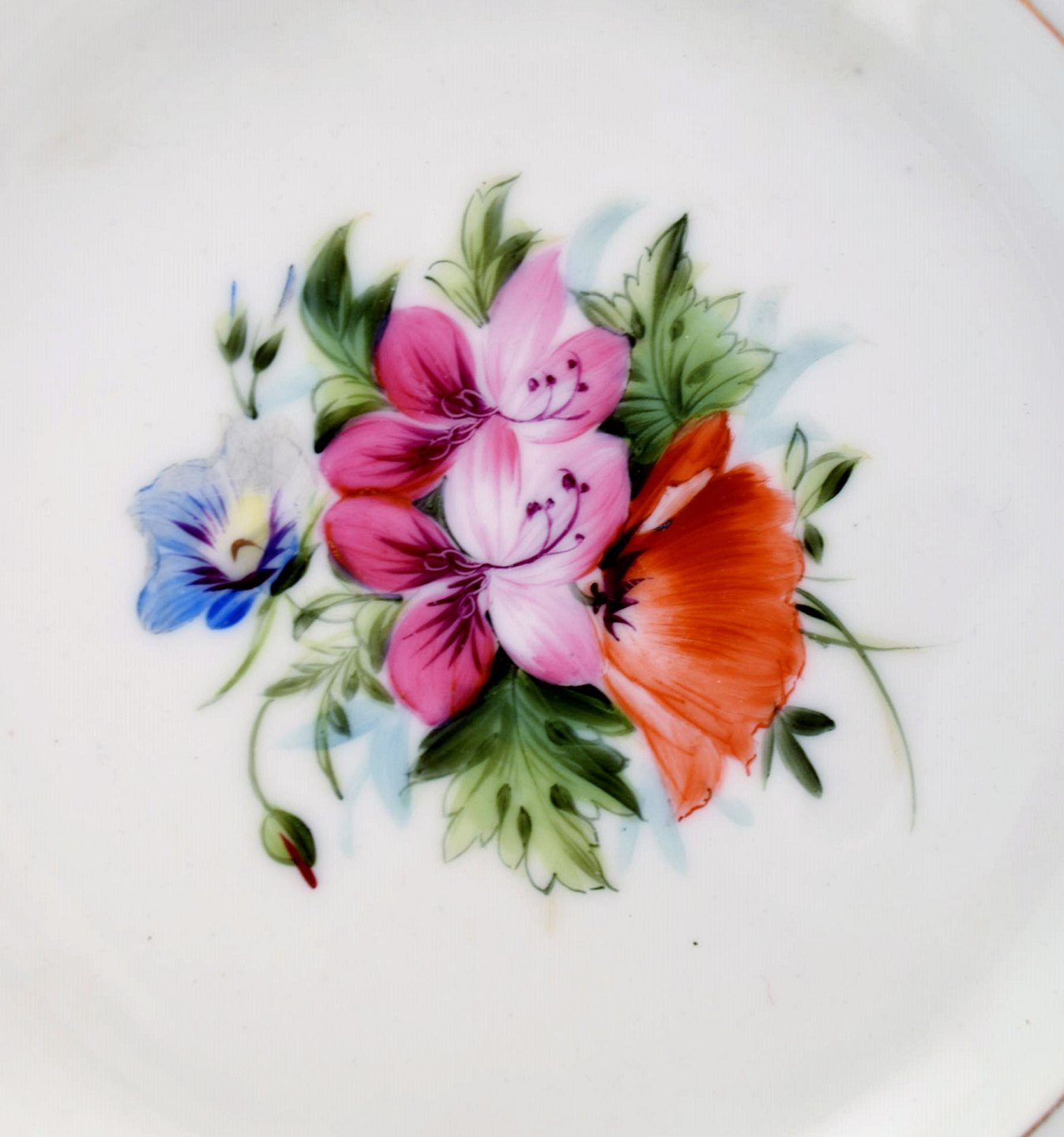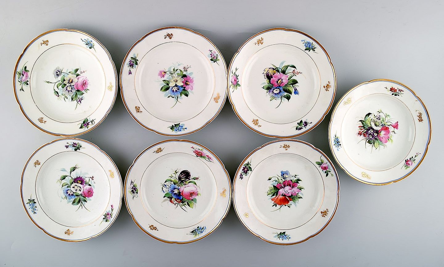 7 antikke b&g bing & grøndahl tallerkener. Håndmalet med blomster. Måler : 19,5 cm. x 4 cm. dybe. 1860/70´erne. I god stand. 1. sortering.