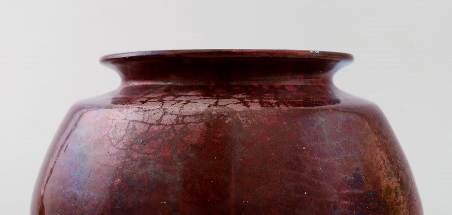 Kähler, lustre-glasur keramik vase, Karl Hansen Reistrup. Drejet af Herman Hans Christian Kähler. Måler 15 x 12,5 cm. Flot lustre glasur. I perfekt stand. Signeret HAK. Ca. 1900.