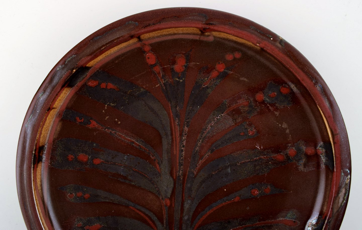 Robin Hopper, engelsk/canadisk keramiker. Keramikfad i lustreglasur. Ca. 1980´erne. I perfekt stand. Måler : 26 cm. x 4 cm. Signeret.
