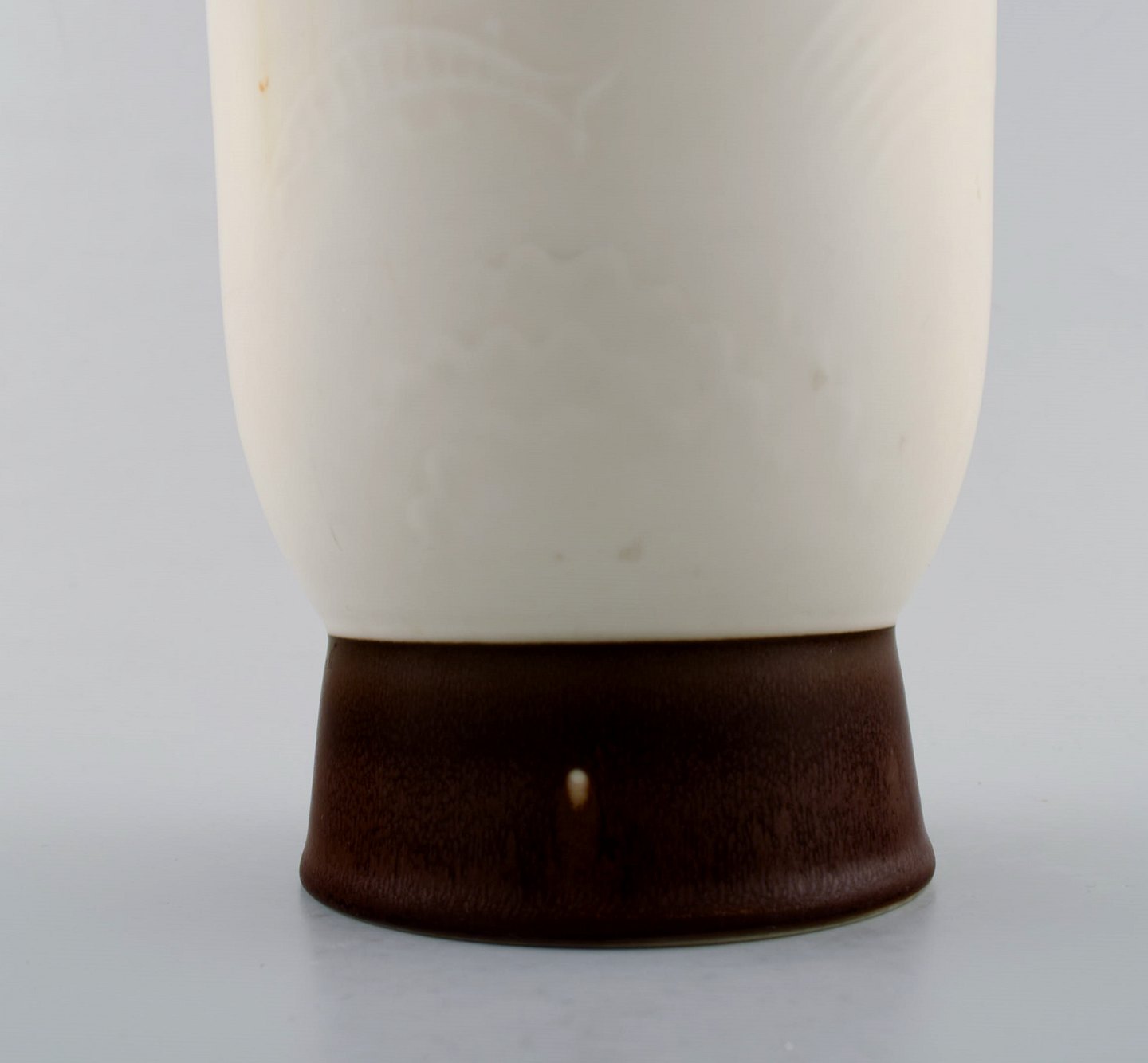B&G, Bing & Grøndahl Art deco stor vase af porcelæn med tilhørende tretårnet sølvlåg fra Cohr, motiv af nøgen kvinde. Stemplet : B&G Måler : 35 cm. x 14,5 cm. 1. sortering, i perfekt stand.