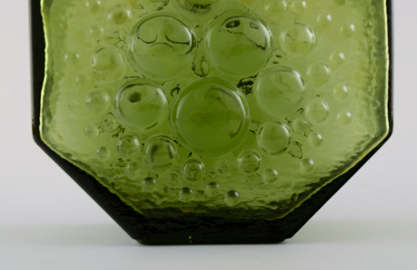 Nanny Still for Riihimäen Lasi, finsk glaskunst vase. I perfekt stand. Smuk flaskegrøn farve. 1960/70´erne. Måler 18 x 15 cm.