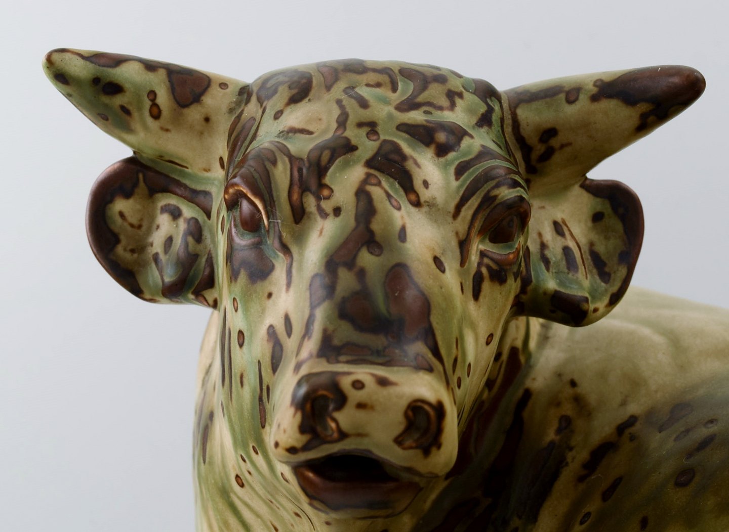 Royal Copenhagen stentøj nummer 2595 stor tyr. Sung glasur. Måler 25 x 36 cm I perfekt stand. 1. sortering. Stemplet.