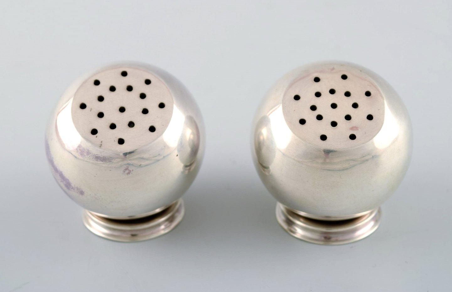 Franz Hingelberg. A pair of modernistic salt and pepper shakers of sterling silver. Measures: 5 cm. x 4.5 cm. In perfect condition. Stamped. Denmark mid 20 c.