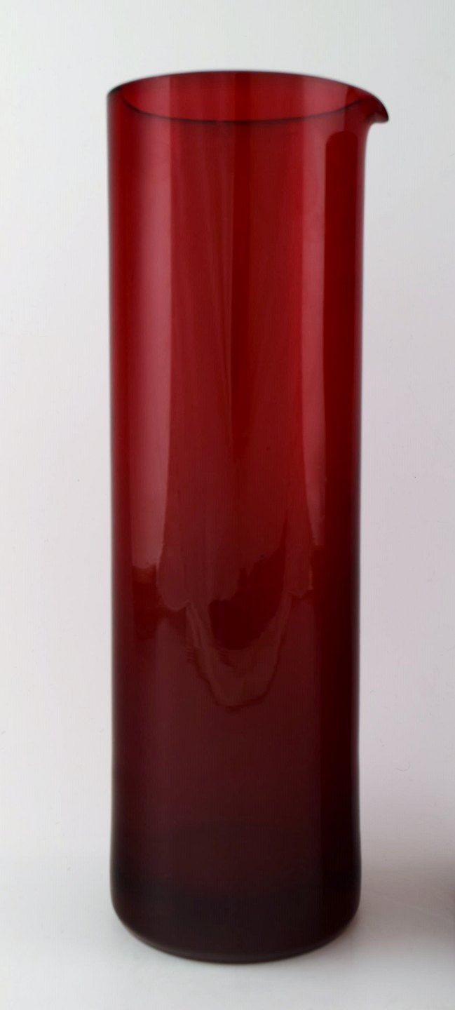 Kaj Franck (Finsk, 1911–1989) Nuutajärvi Glass Works, Finland, kunstglas. To kander i rødt kunstglas. Finland 1960/70´erne. I perfekt stand. Måler : 27 cm. x 9 cm. Ustemplet.
