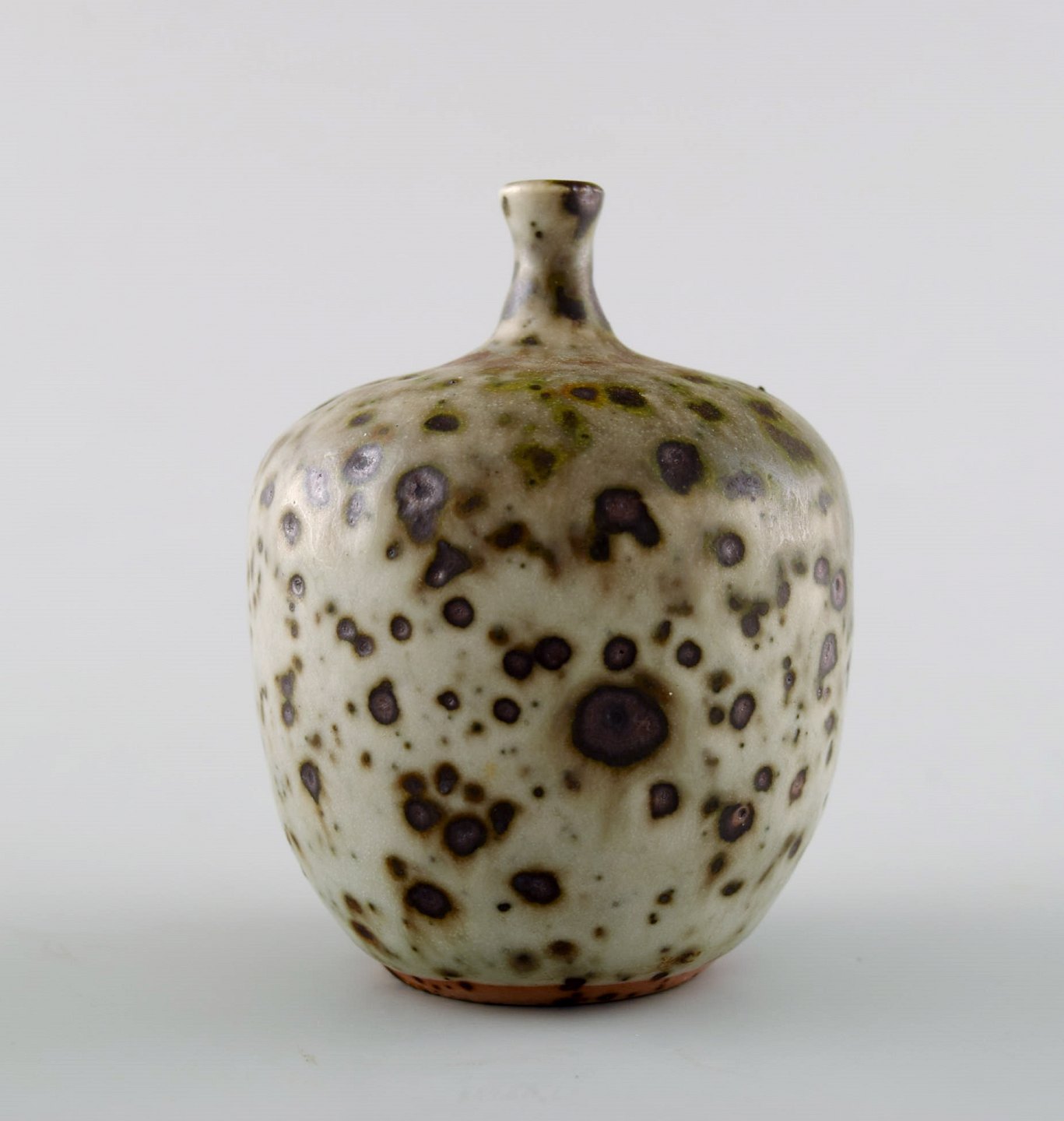 Rolf Palm, Mölle, tre unika keramikvaser. Svensk design. Måler : 8,5 cm. x 8,5 cm. (største) Stemplet. I perfekt stand.