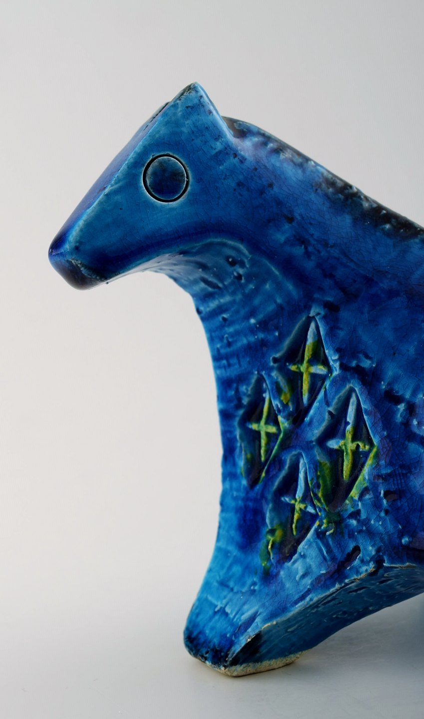 Bitossi, Rimini-blå figur i keramik, designet af Aldo Londi. Ustemplet. 1960´erne. Måler : 14,5 cm. x 11,5 cm. I perfekt stand.