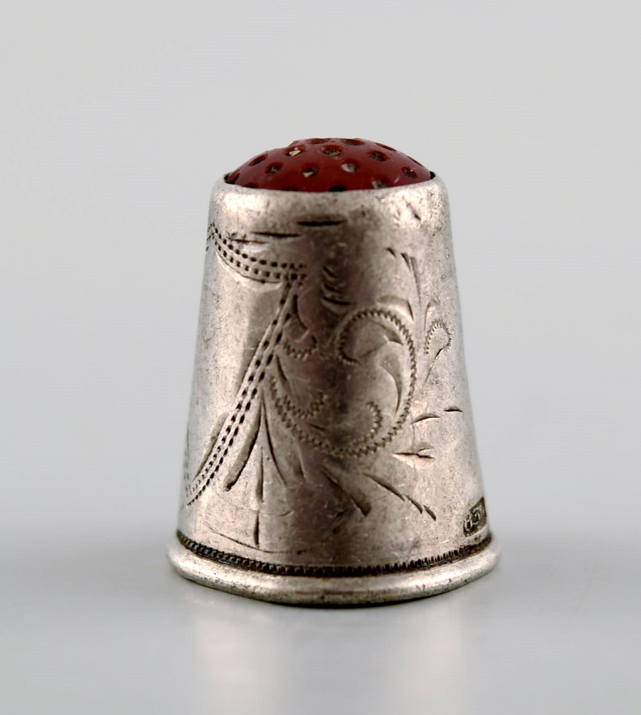 Fem danske fingerbøl i sølv. Stempelt: 830s. Størrelse: 25 mm. x 15 mm. Flot stand.