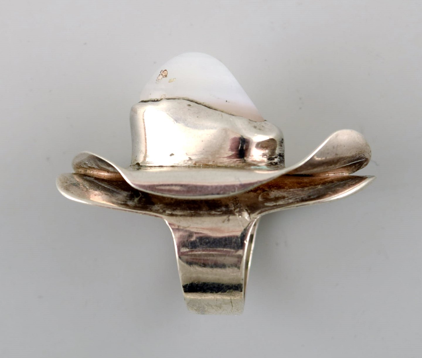 Svensk modernistisk sterlingsølv ring med sten i organisk form. Størrelse : 17 mm. Stemplet : 925 s. 1960´erne. I flot stand. STORT UDVALG I MODERNISTISK SØLV FRA 1960/70´ERNE PÅ LAGER.