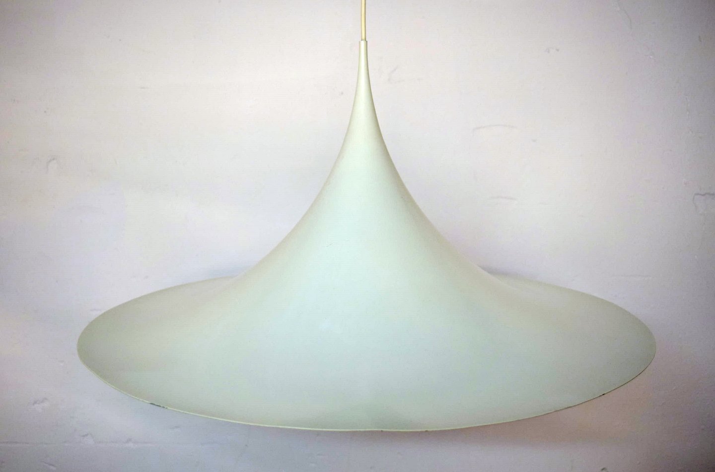 Semi pendel, Klaus Bonnerup & Torsten Thorup trompet lampe. Hvid. Diameter 68 cm.