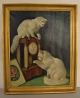 Arthur Heyer (1872-1931), Ungarnsk kunstner. 2 hvide katte i interiør.