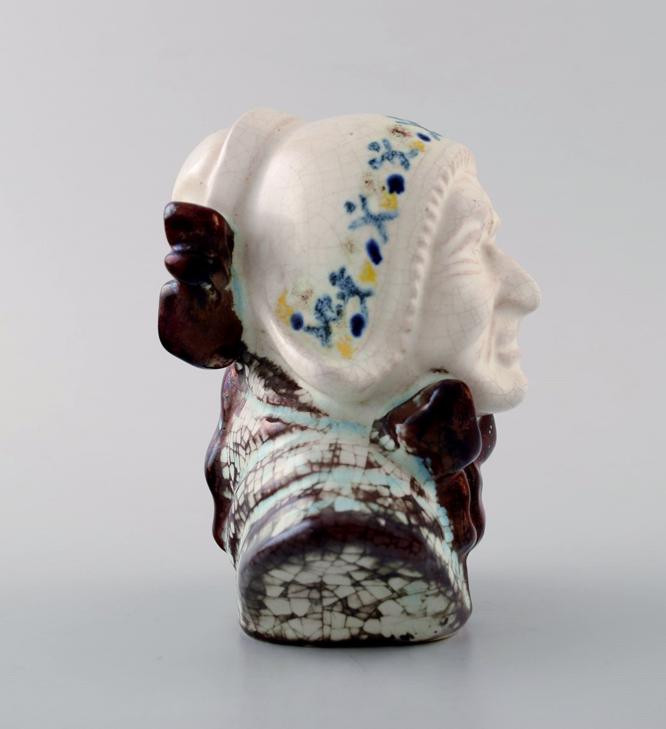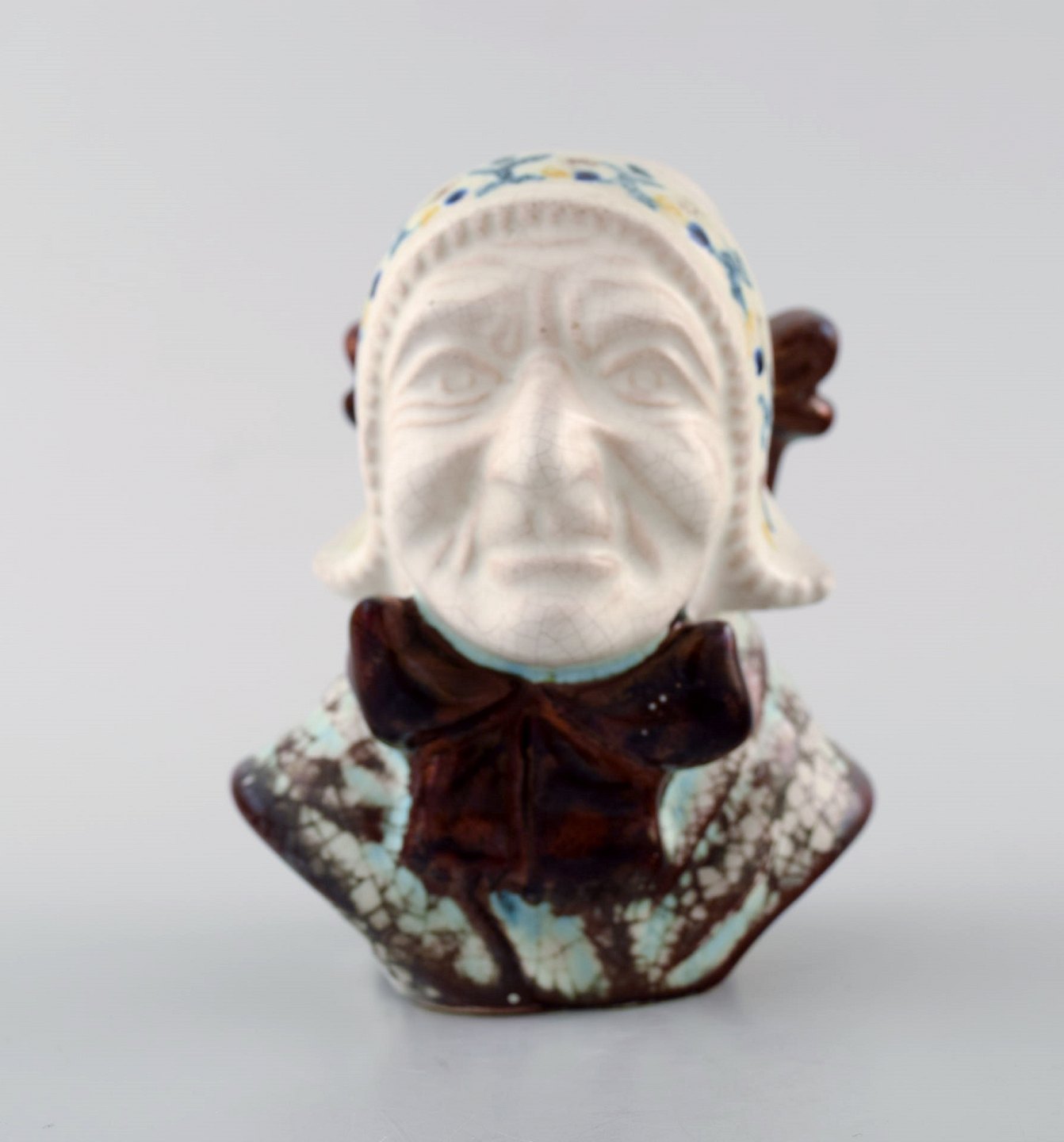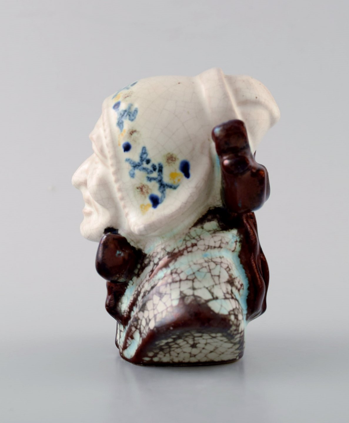 Michael Andersen keramik fra Bornholm. 2 kvindehoveder, nationaldragt, håndmalet. Måler : 9 x 7 cm. Perfekt stand.